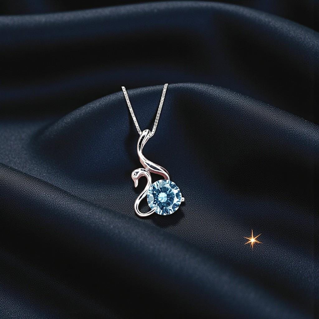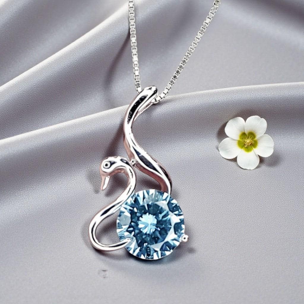 Aquamarine Necklace Simple Solitaire Swan Style