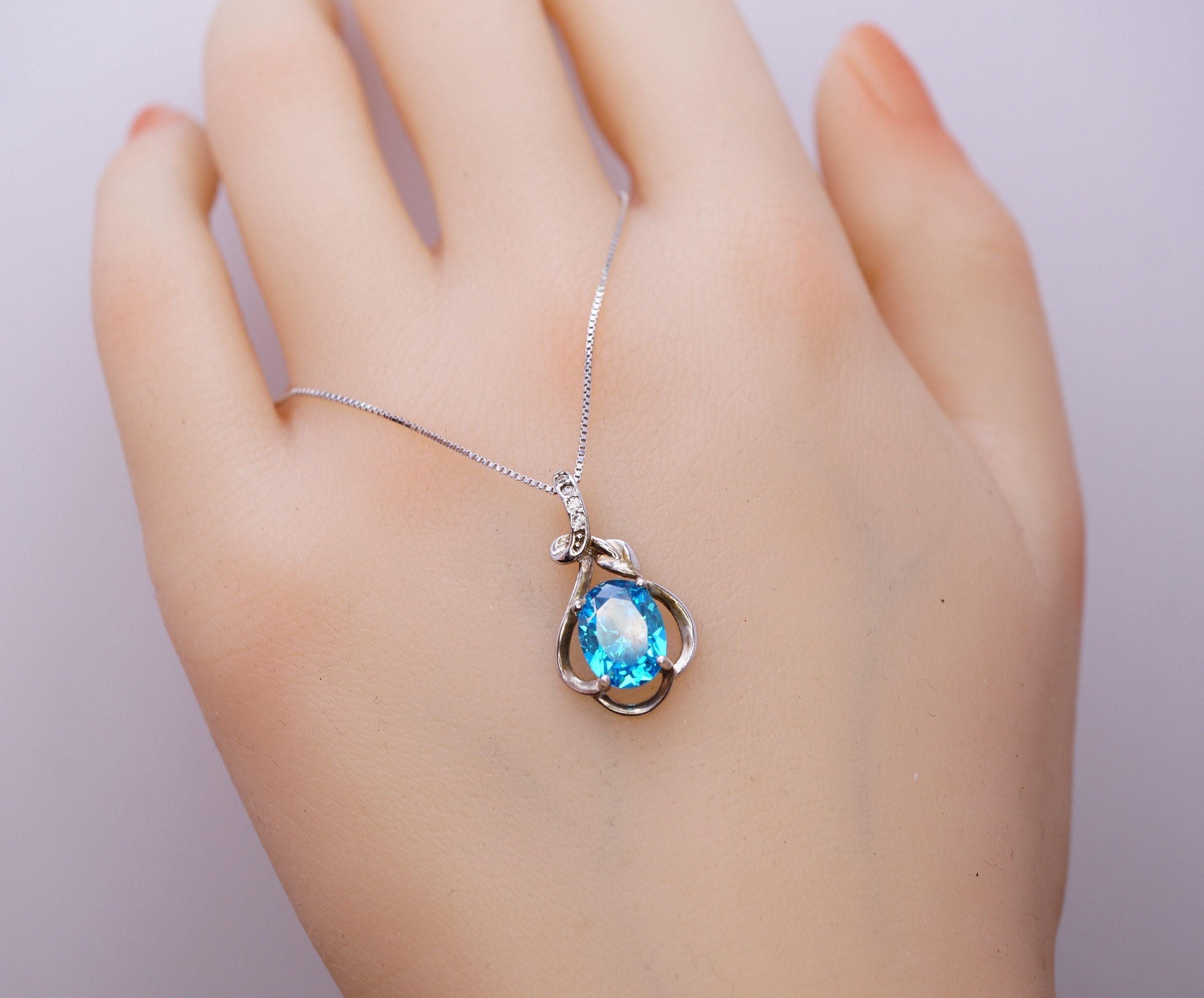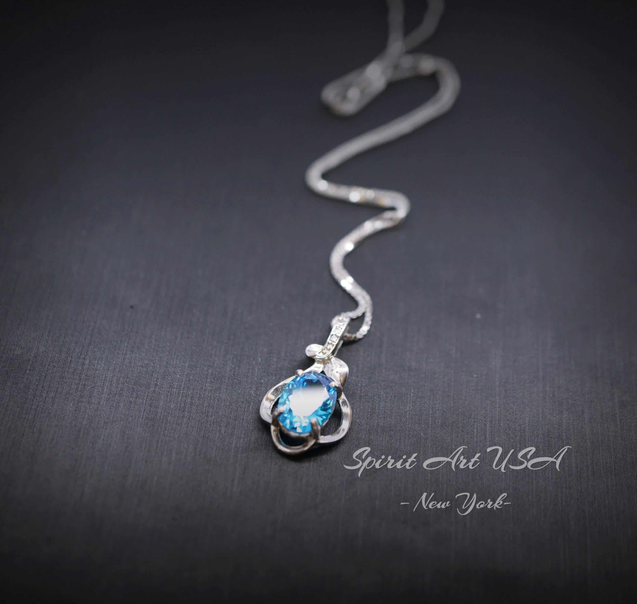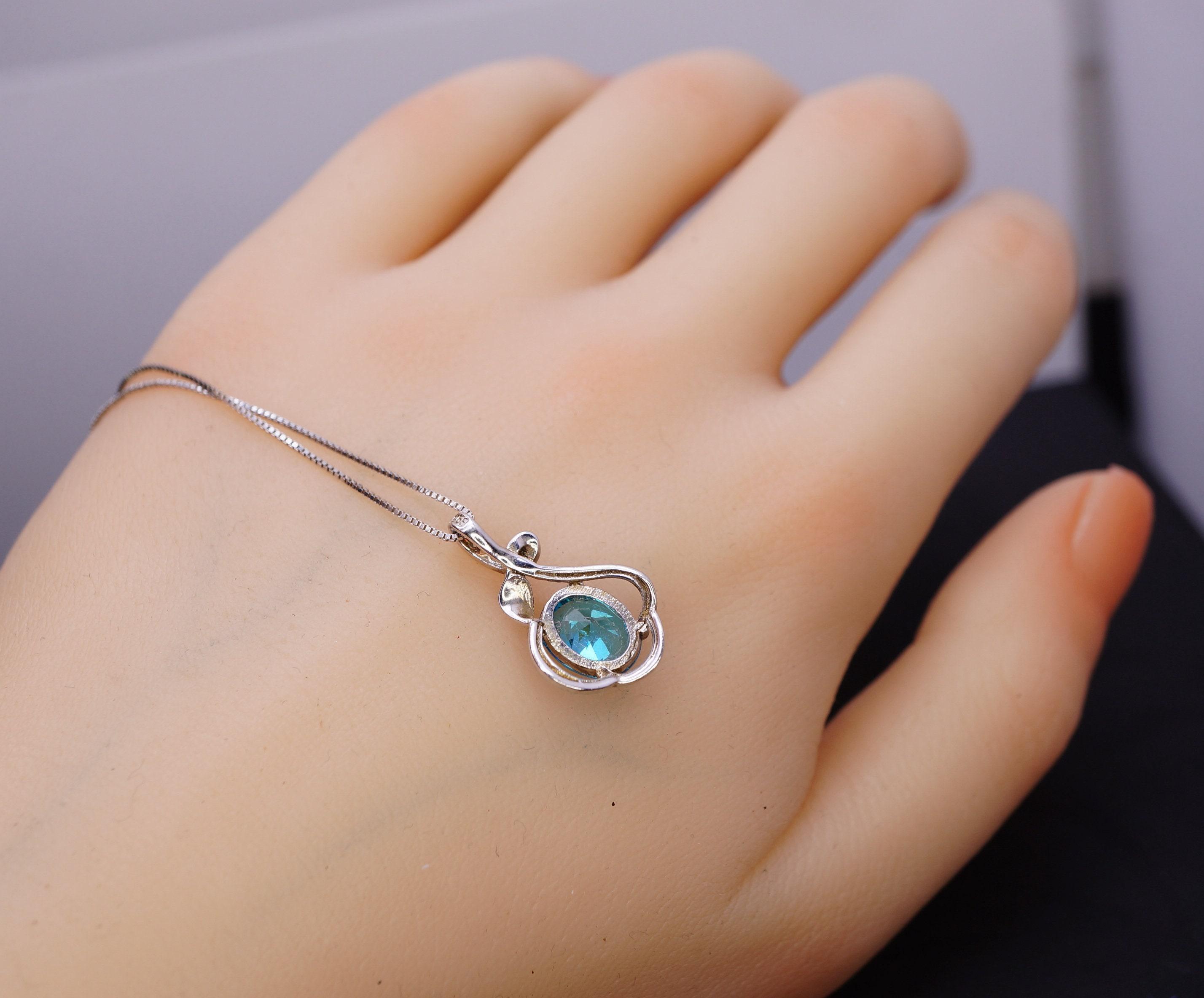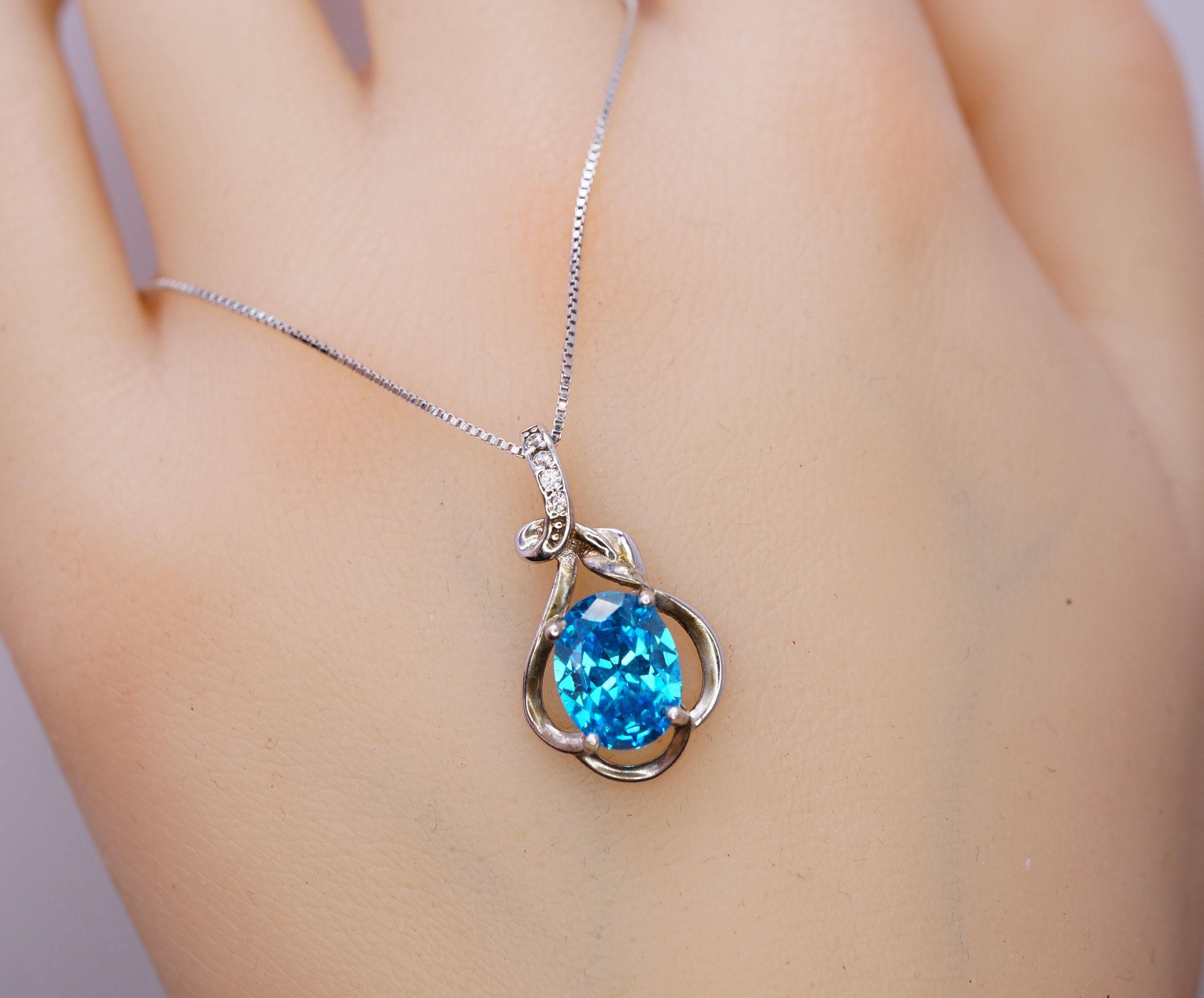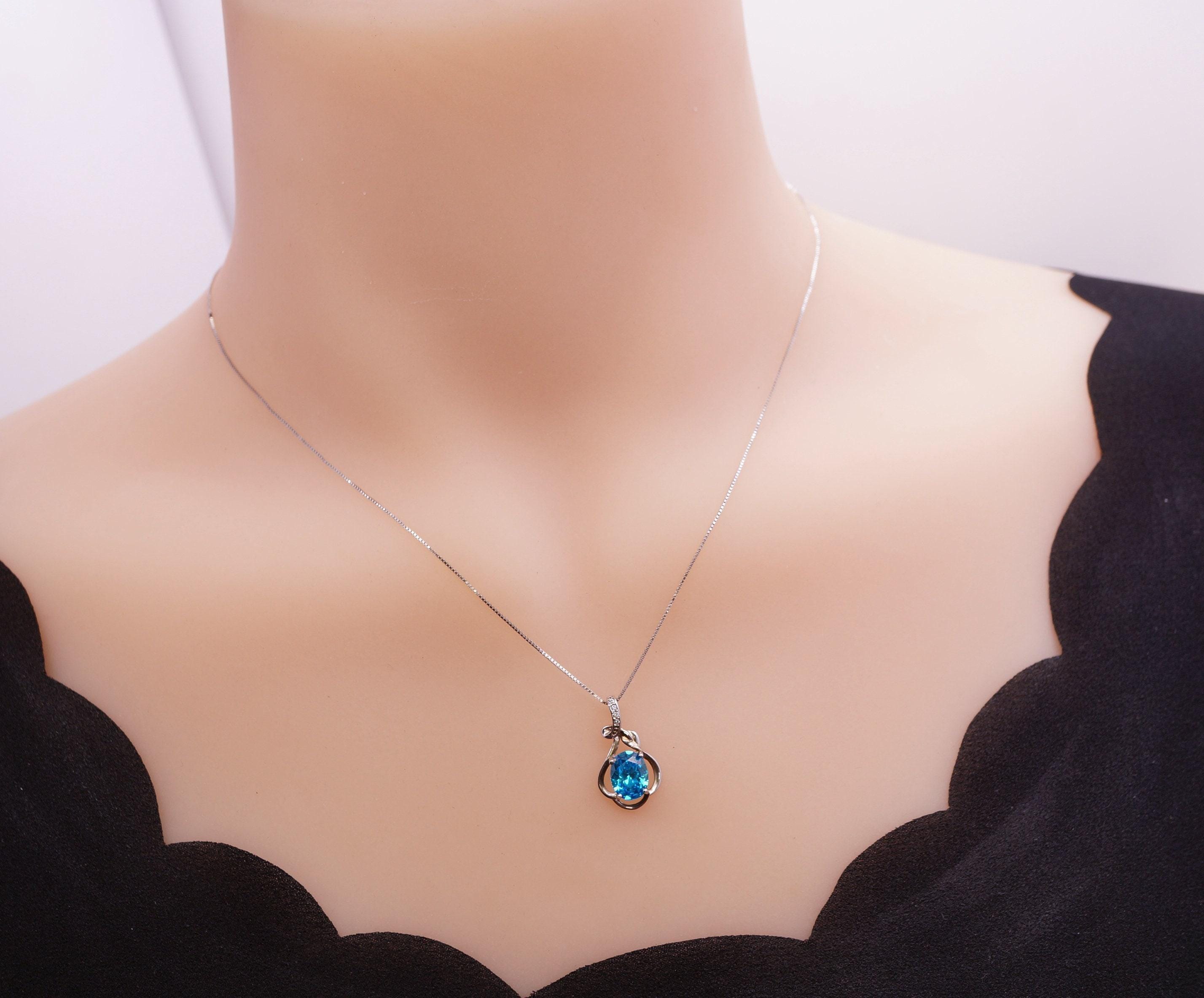 Dainty Blue Topaz Necklace Simple Petal Flower style