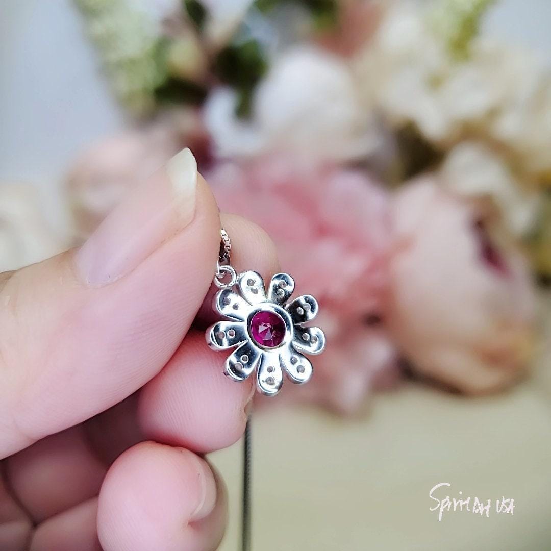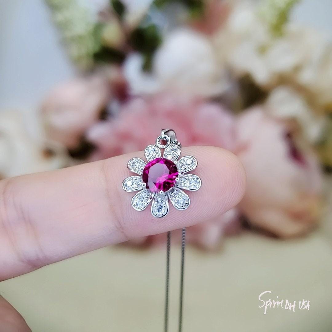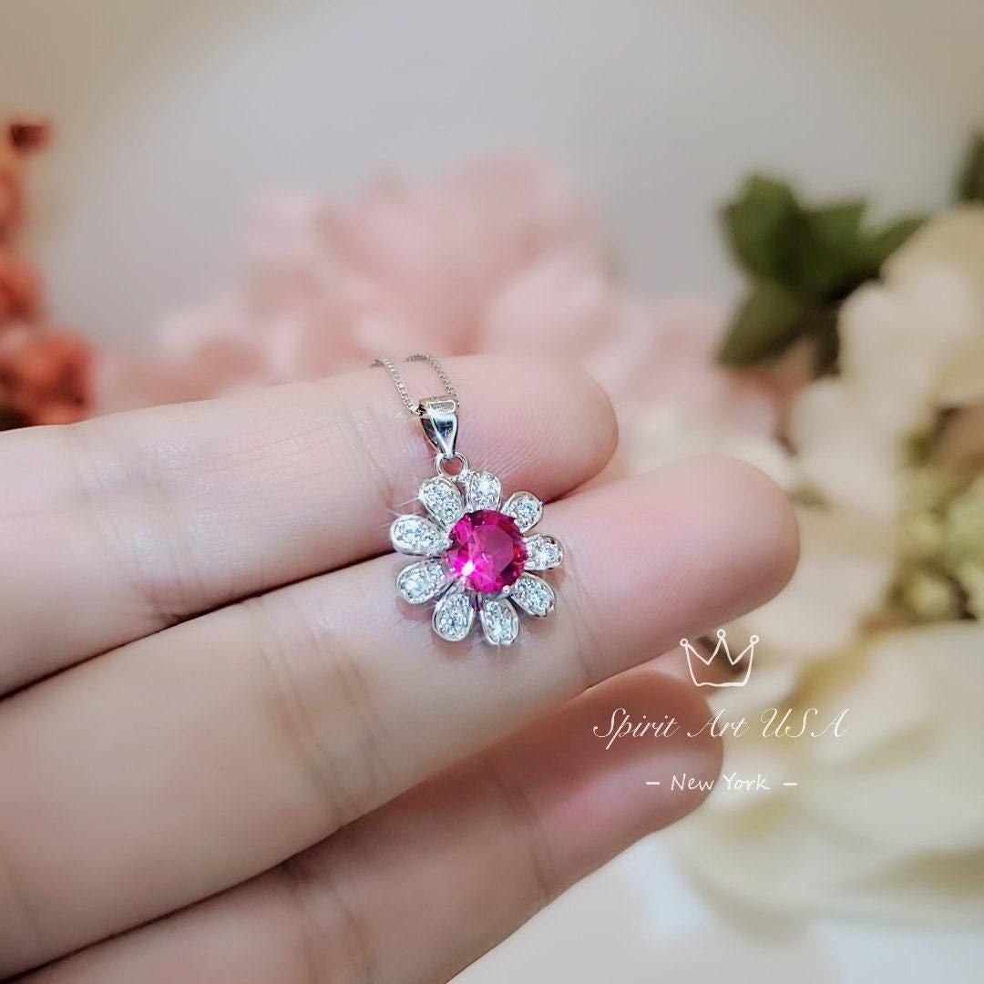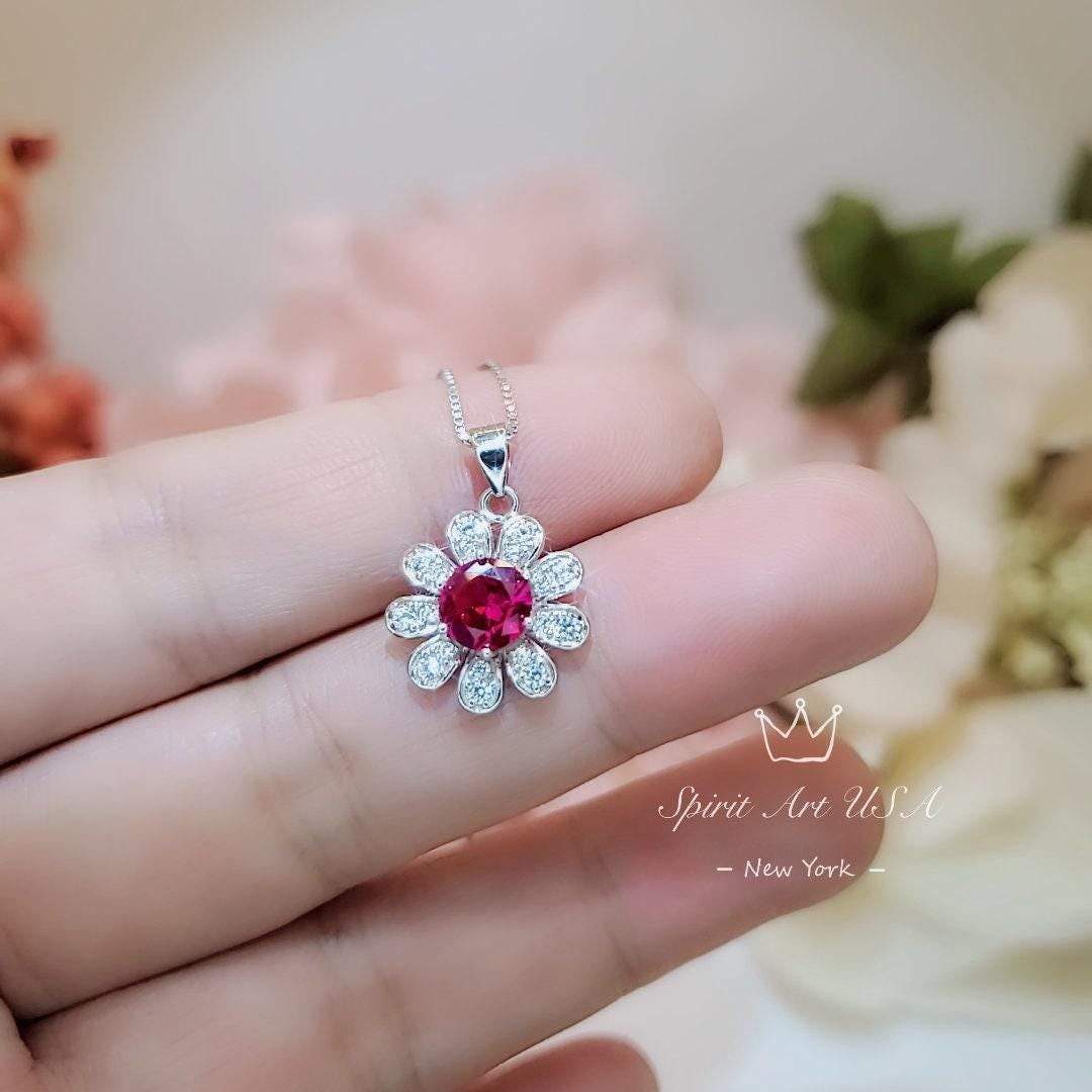 Tiny Red Ruby Gemstone Jewelry Sunflower Style