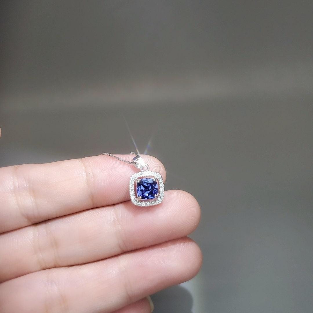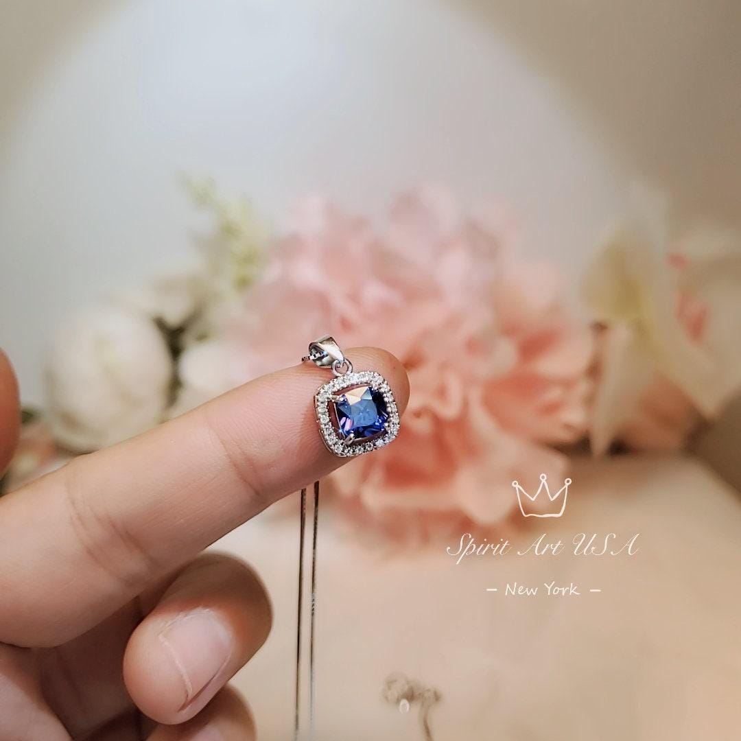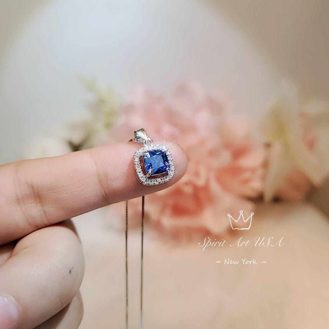 Tiny Square Tanzanite Gemstone Jewelry unique Artisan design full sterling silver made