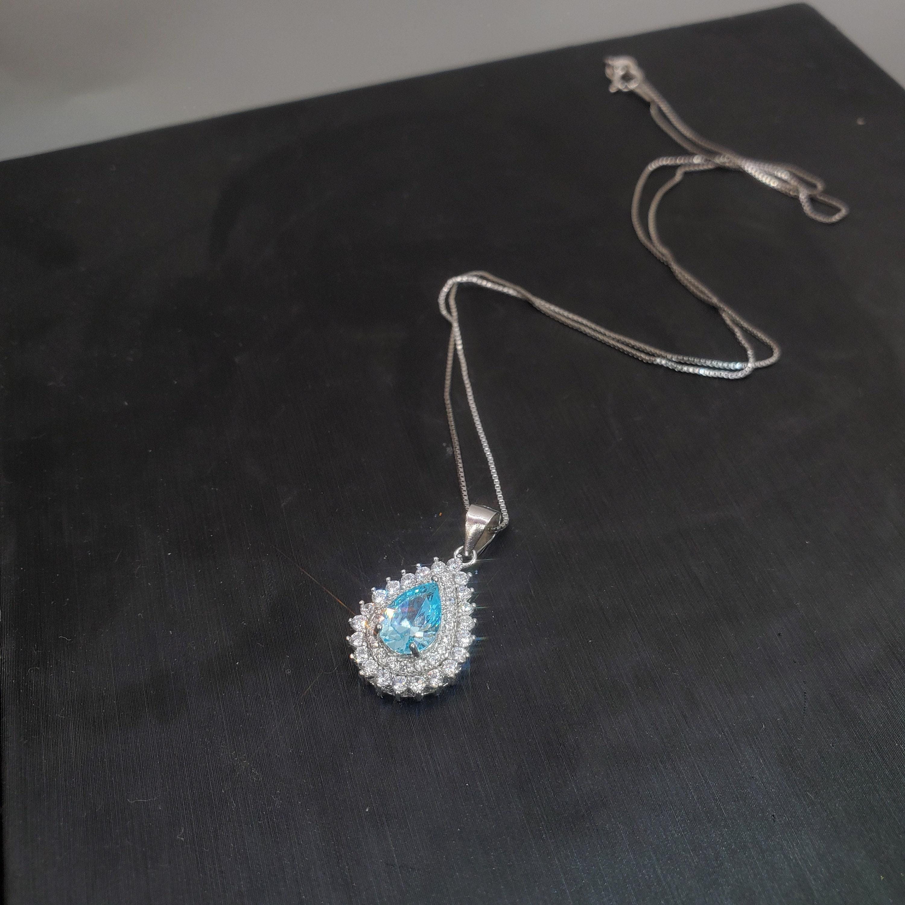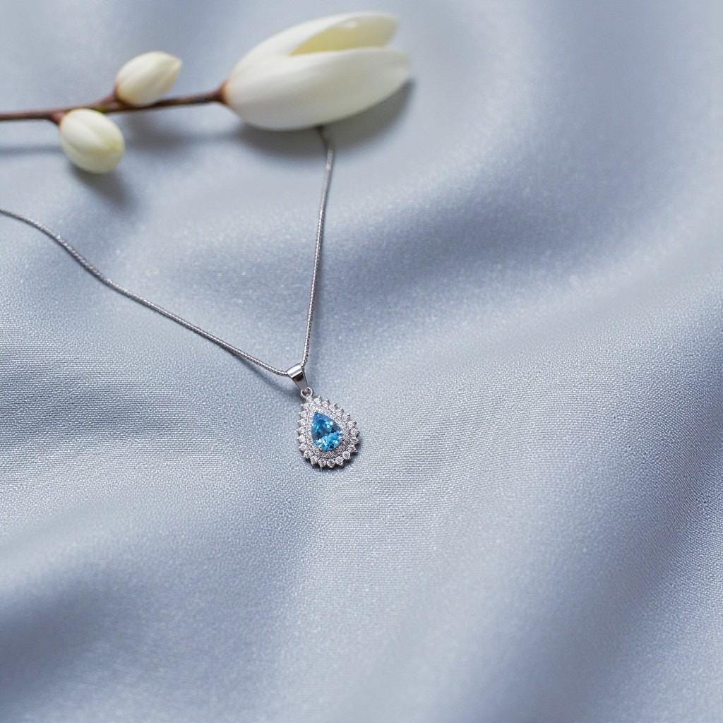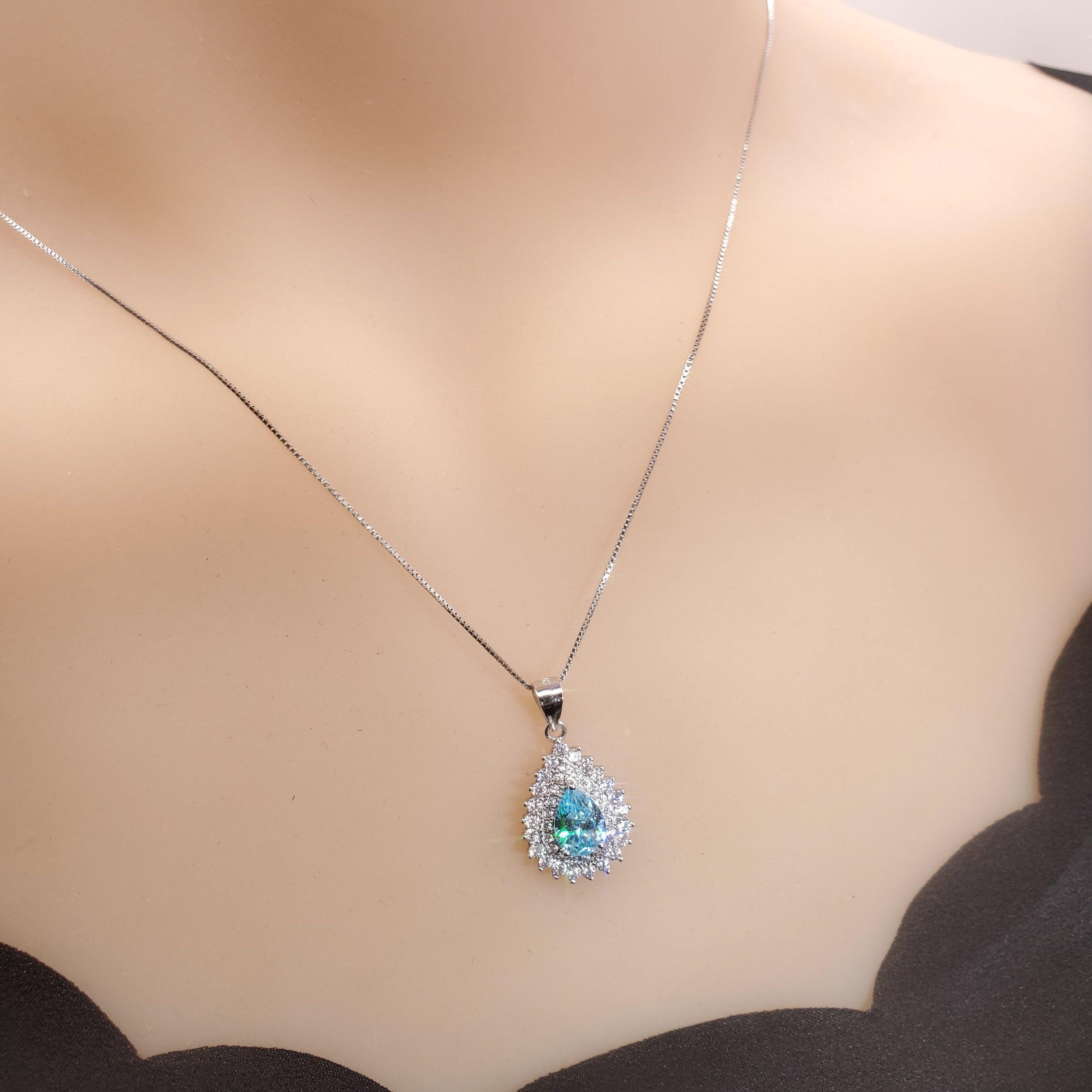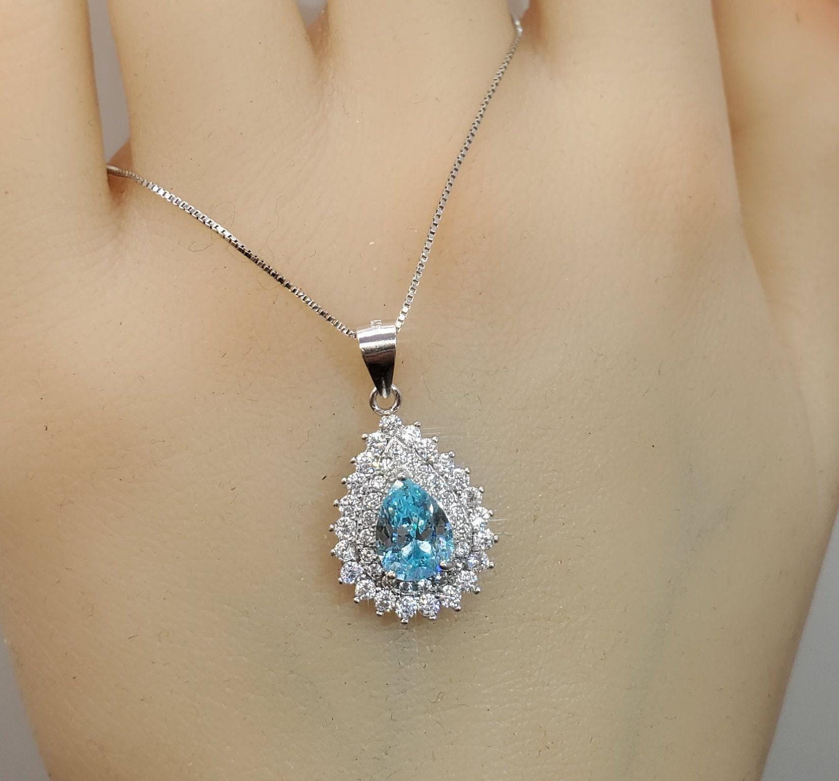 Blue Aquamarine Tiny Teardrop Gemstone Jewelry unique Artisan design full sterling silver made