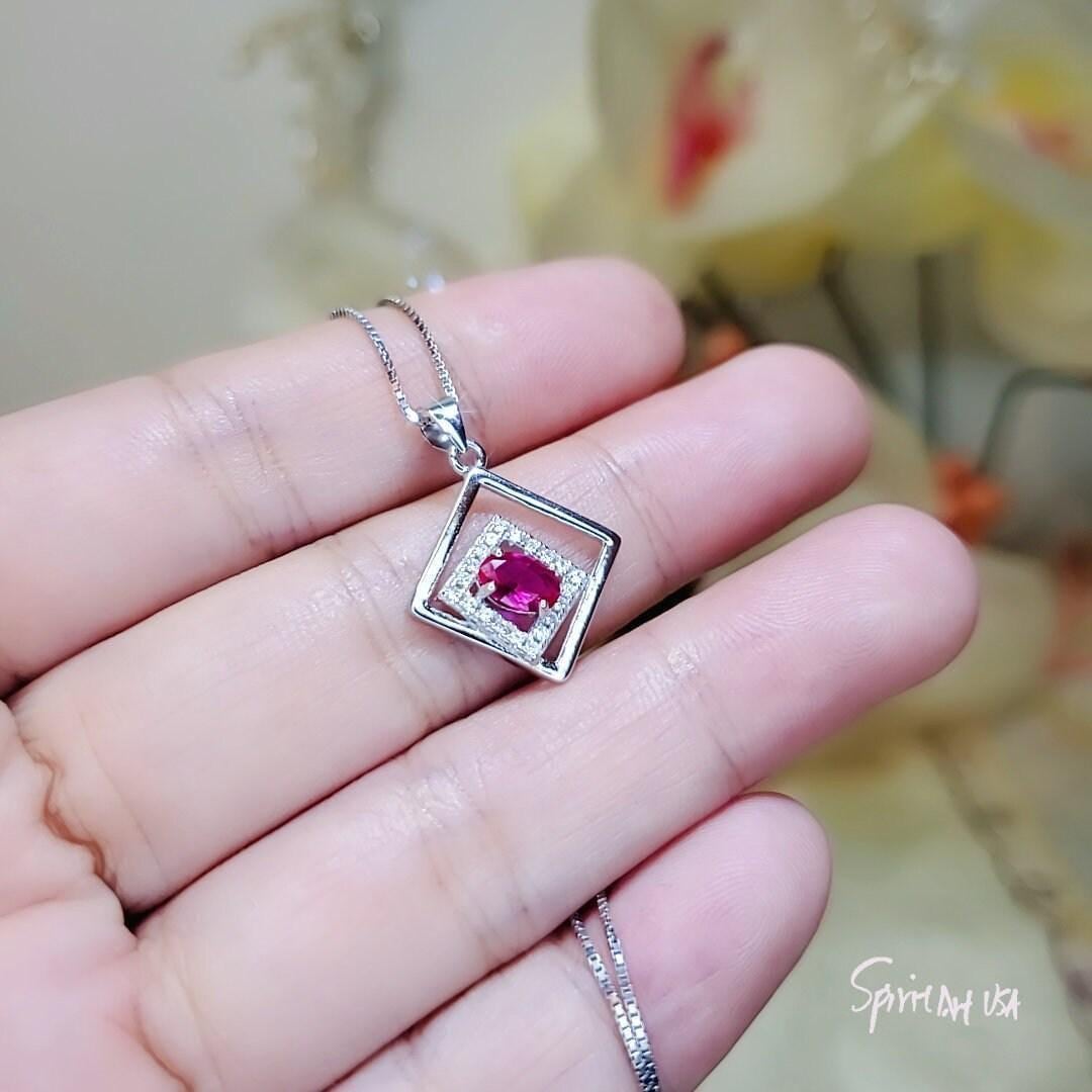 Tiny square Red Ruby Gemstone Jewelry