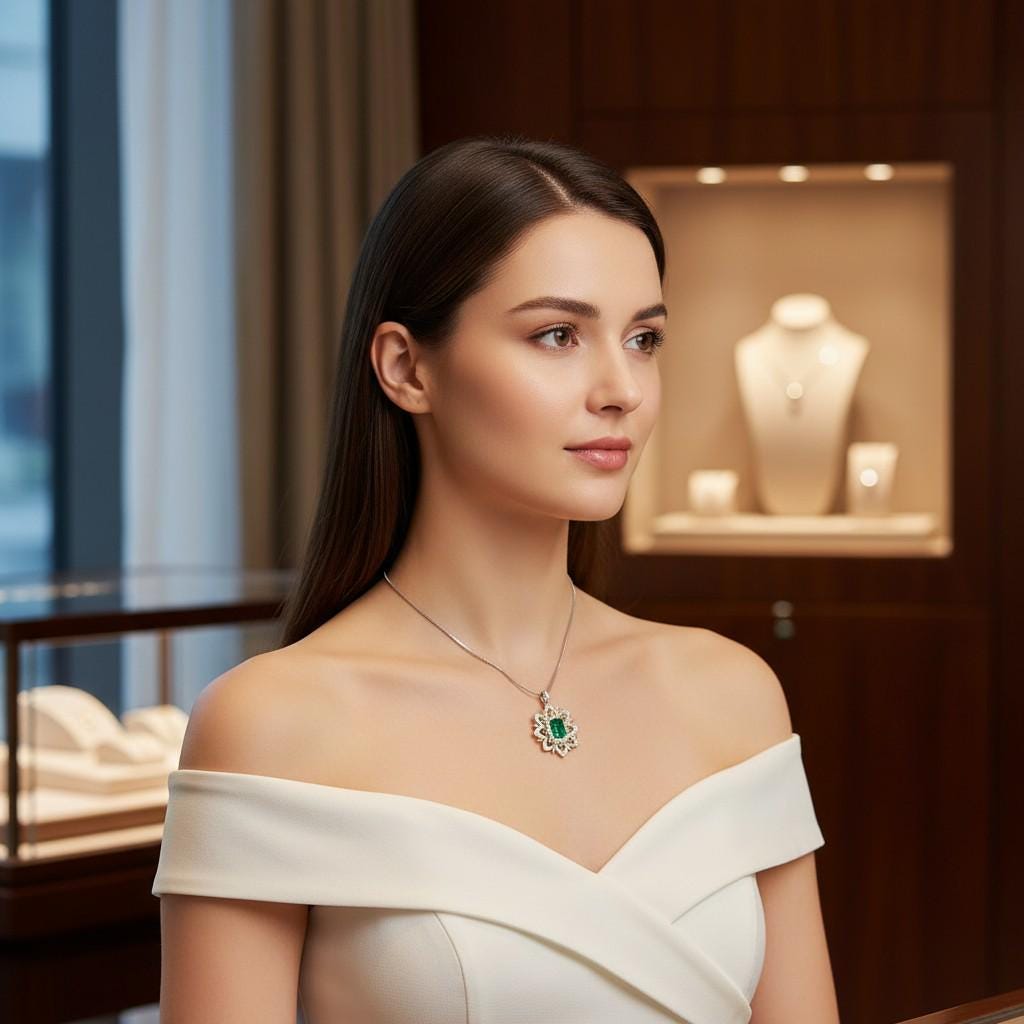 Emerald Jewelry Water Lily Flower Style