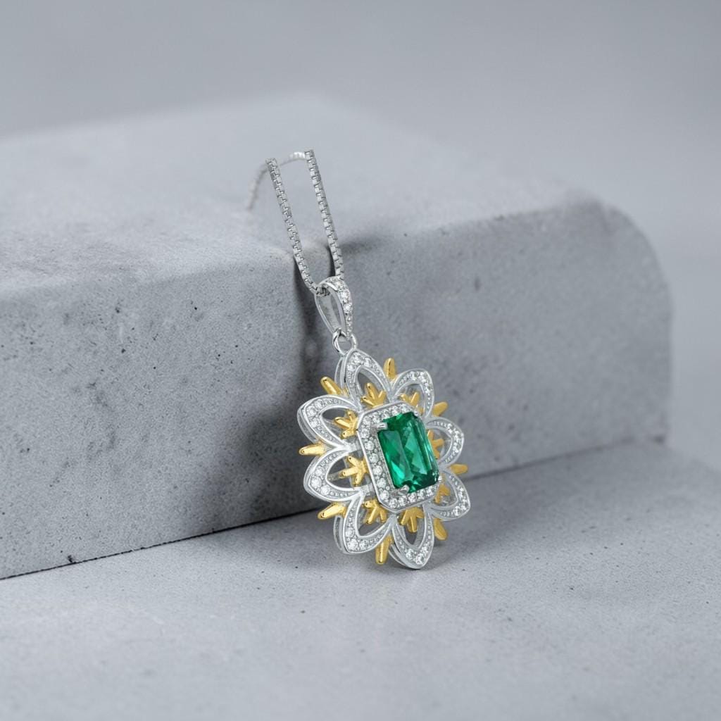 Main Stone: Lab created Green Emerald Gemstone