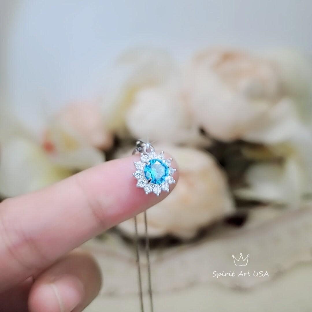 Tiny Blue Topaz Jewelry 6MM Sunflower Style