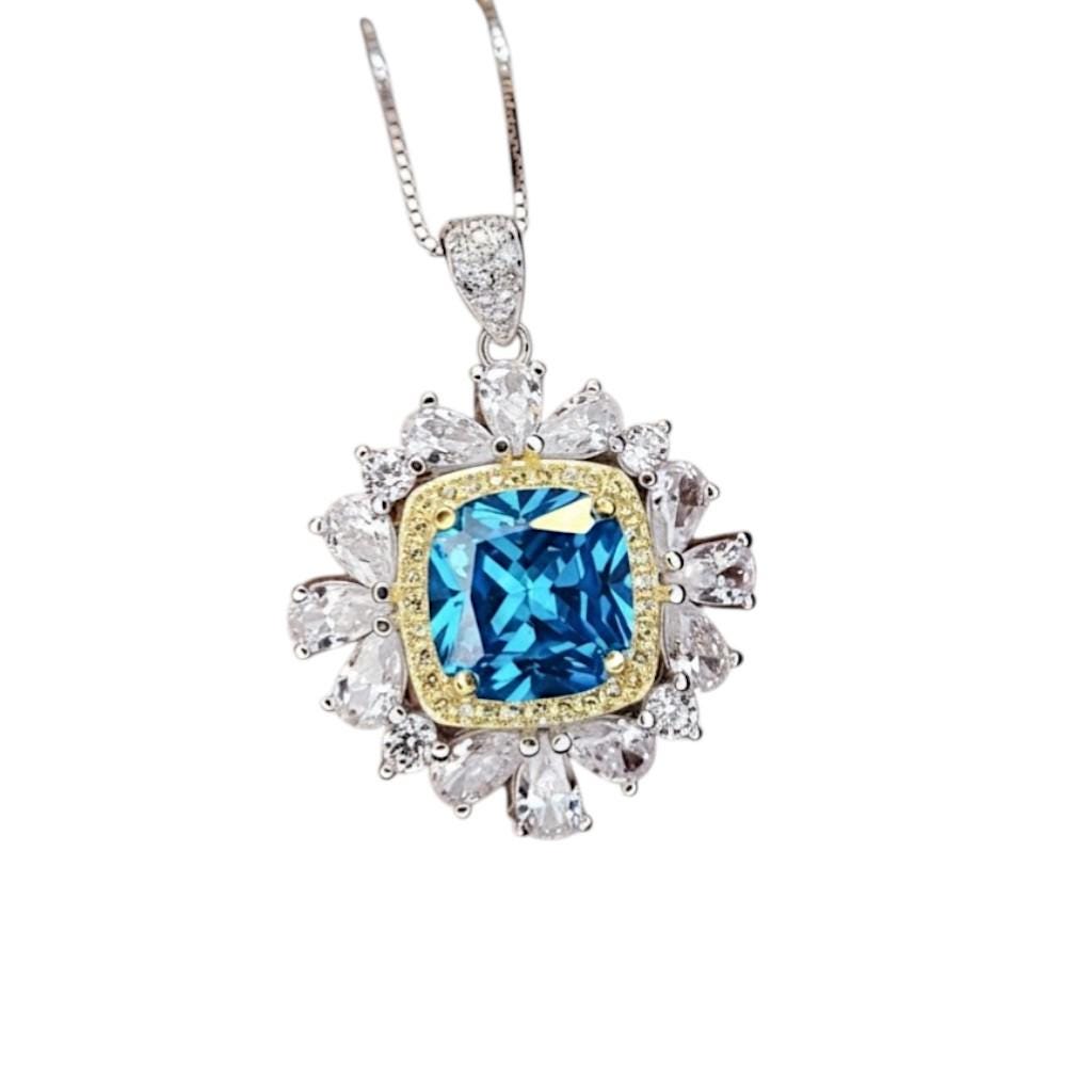 Large Square Blue Topaz Jewelry gordeous Teardrop diamond surround Style