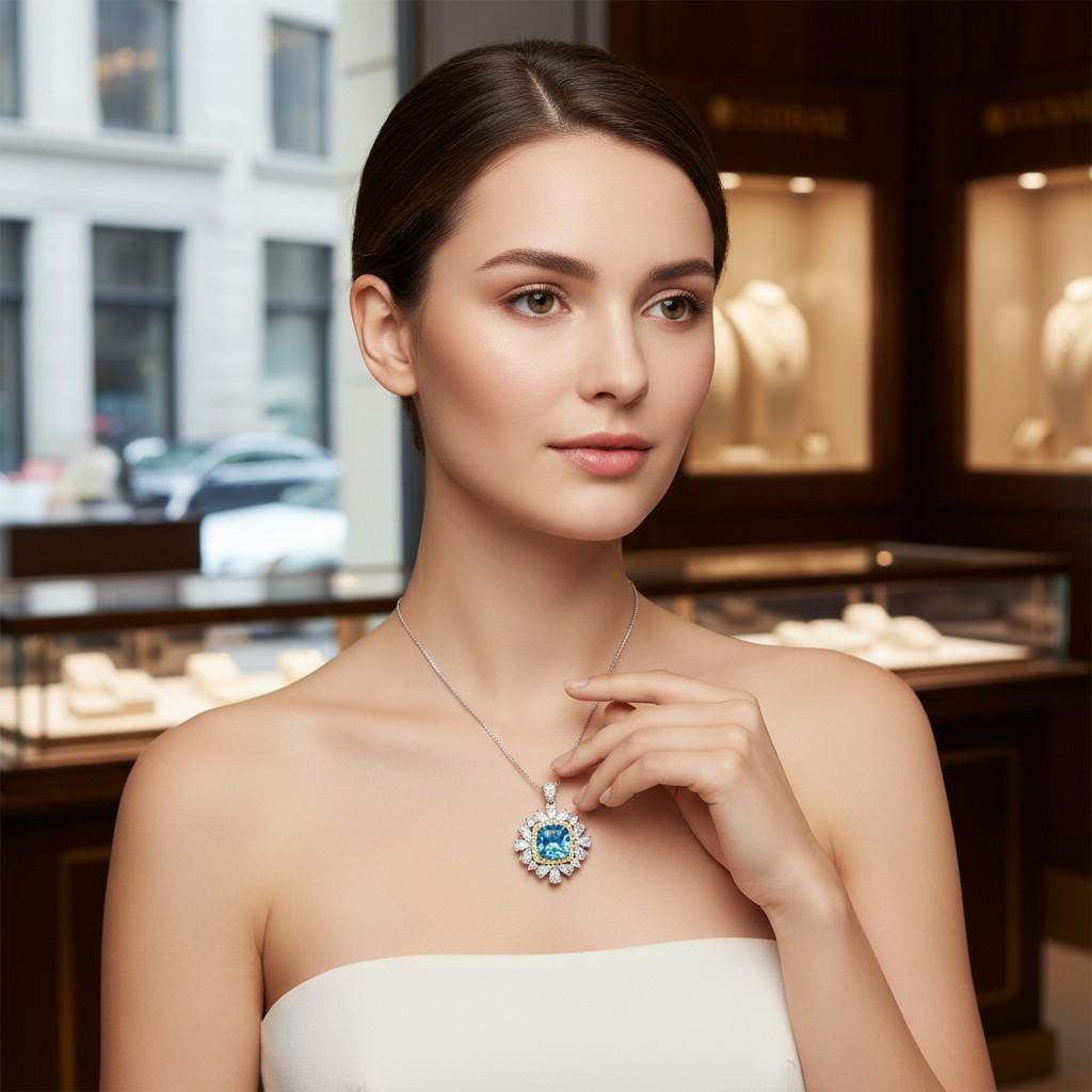 I exchanged this pendant for another b/c I felt the lab created diamonds were sooo shiny. If you’re looking for little bling…this is it!It was a piece I hoping to wear daily. I exchanged this pendant for another. The owner was very responsive and kind about the exchange. I also purchased a small pendant for my granddaughter. She loves the necklace I wear from this shop b/c the topaz is a magnificent color! She has to wait until Christmas 2022 to get her pendant.