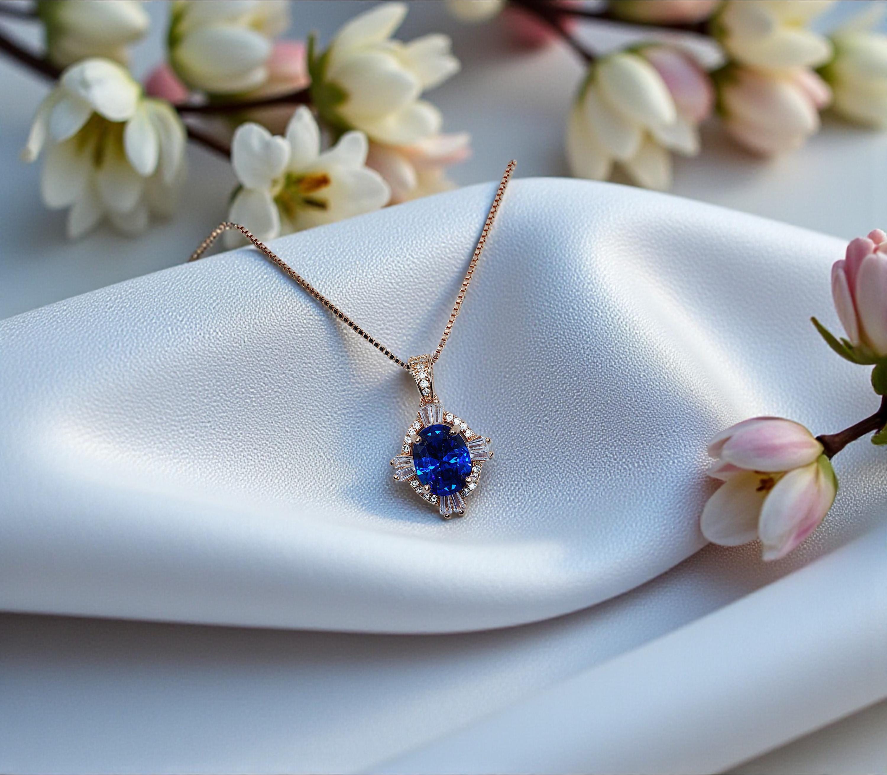 Tiny Blue Sapphire Jewelry Rose gold Oval 1.8 Ct