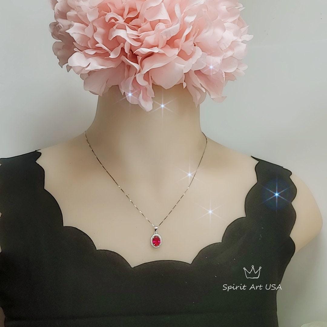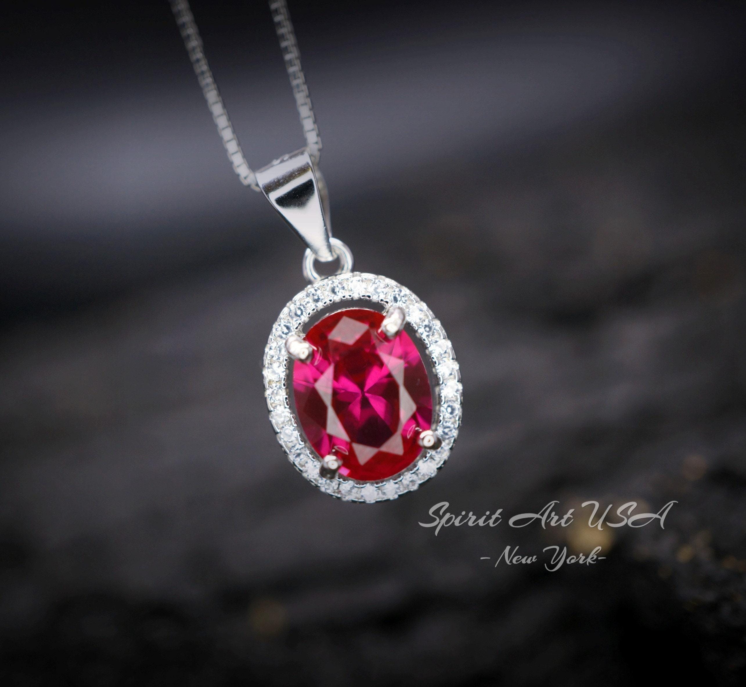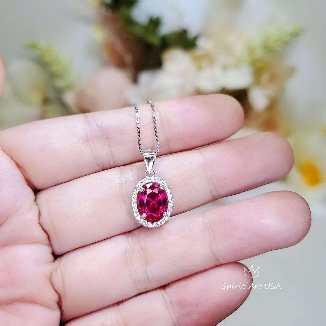 Tiny Ruby Jewelry Diamond Halo Oval Style