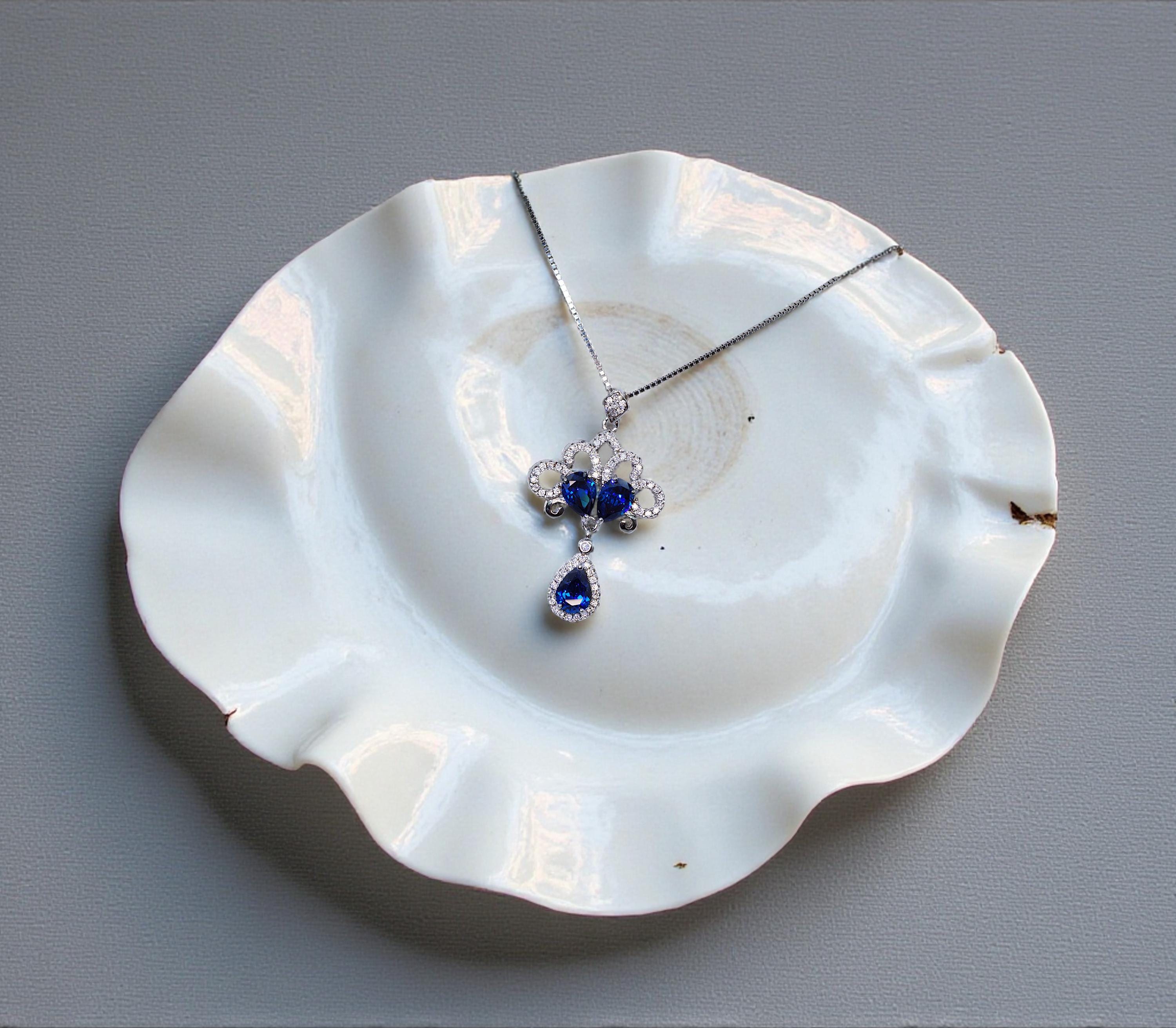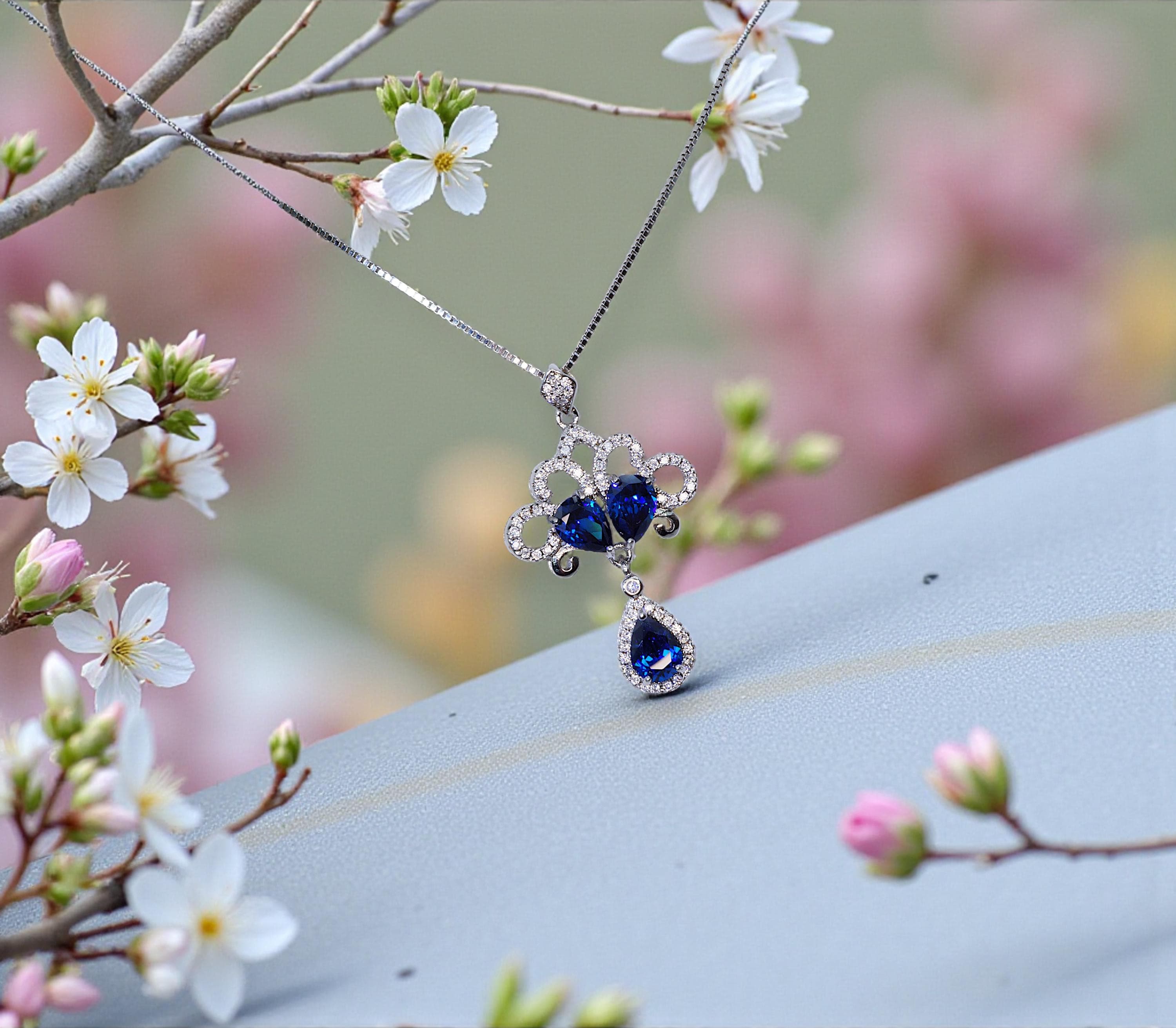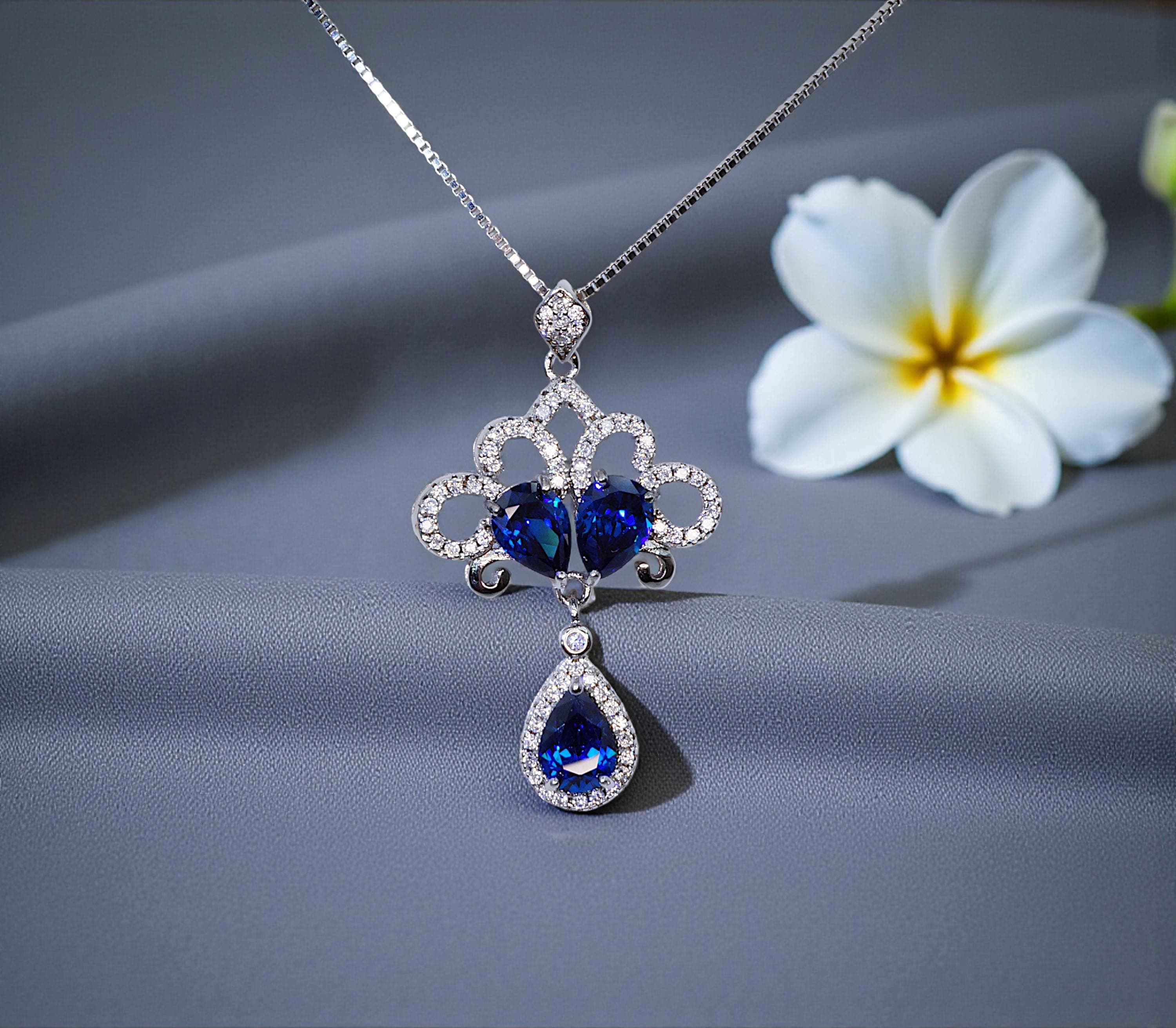 Blue Sapphire Jewelry Peacock Flower Style