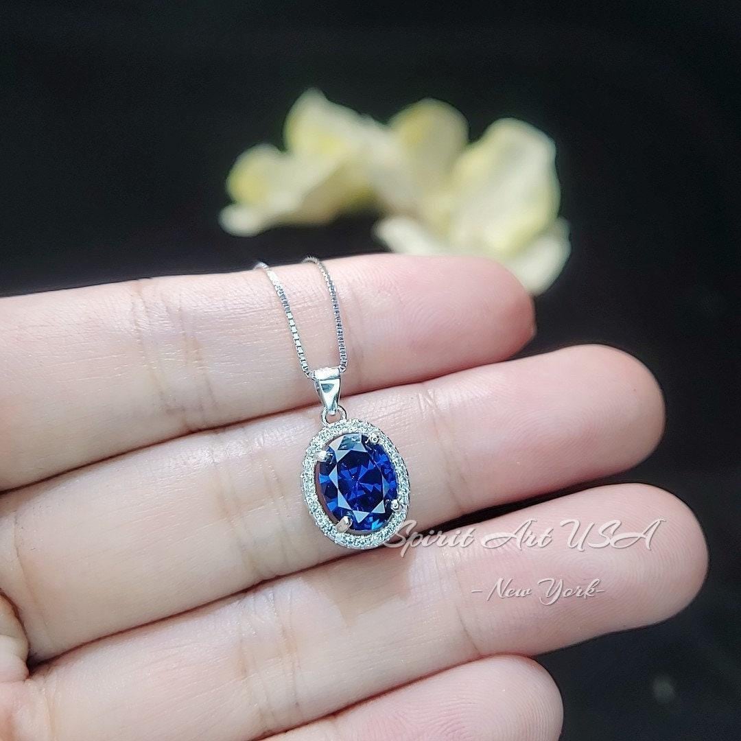 Blue Sapphire Jewelry 2.1 ct oval halo Style