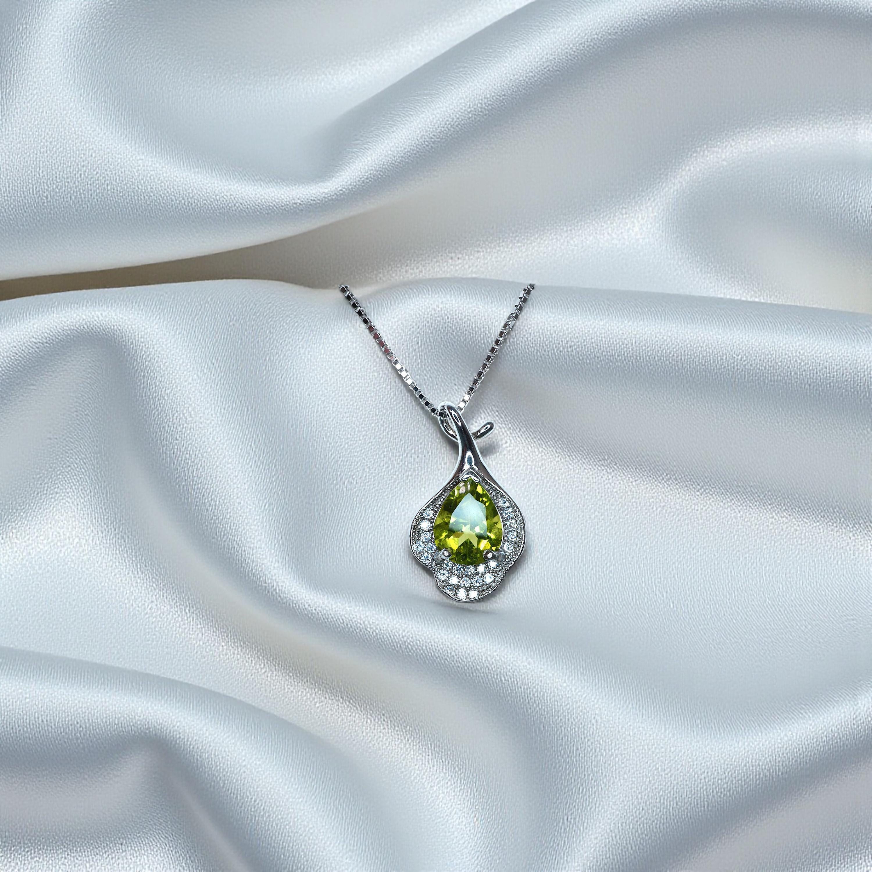 Natural Peridot jewelry Teardrop Cut Flower Petal Style