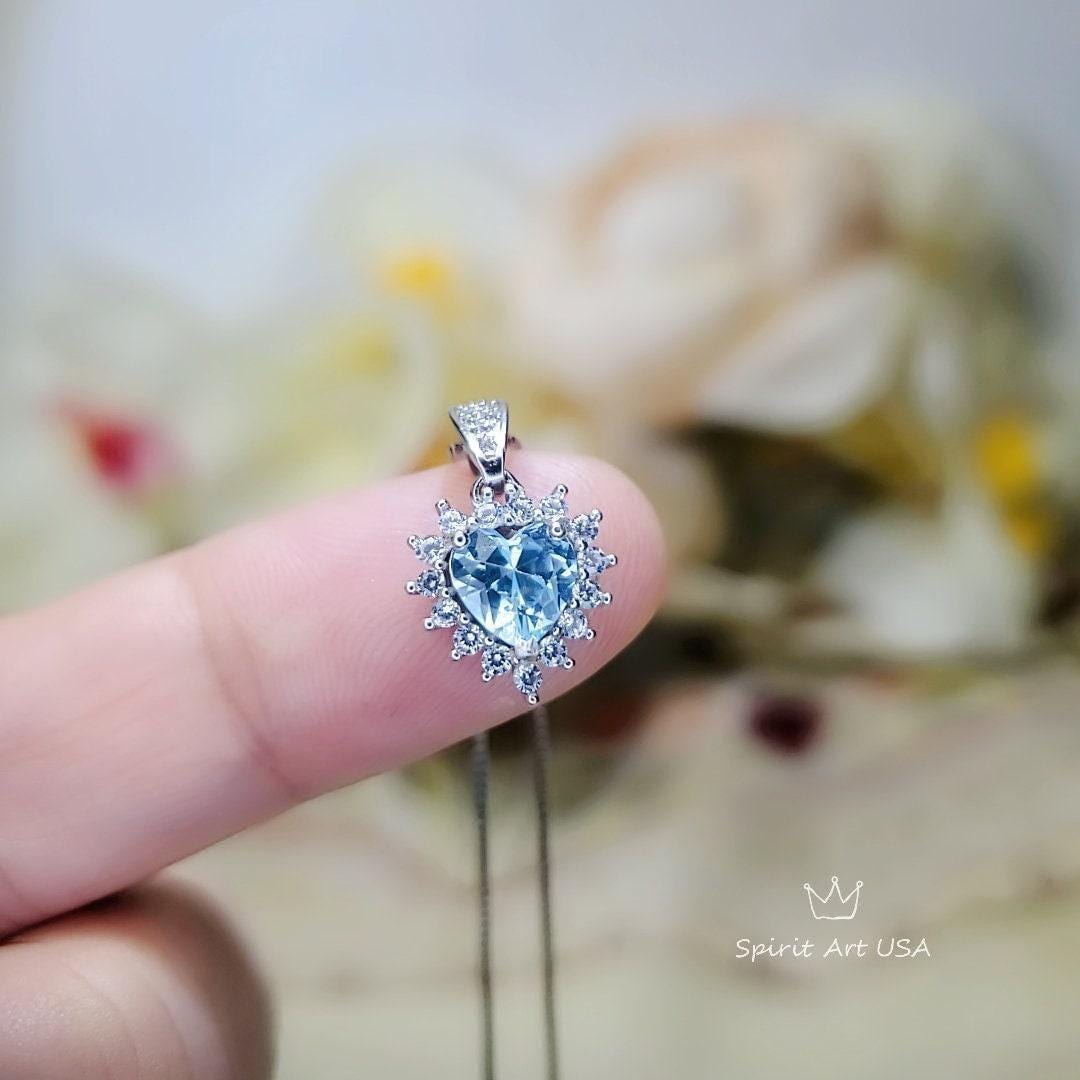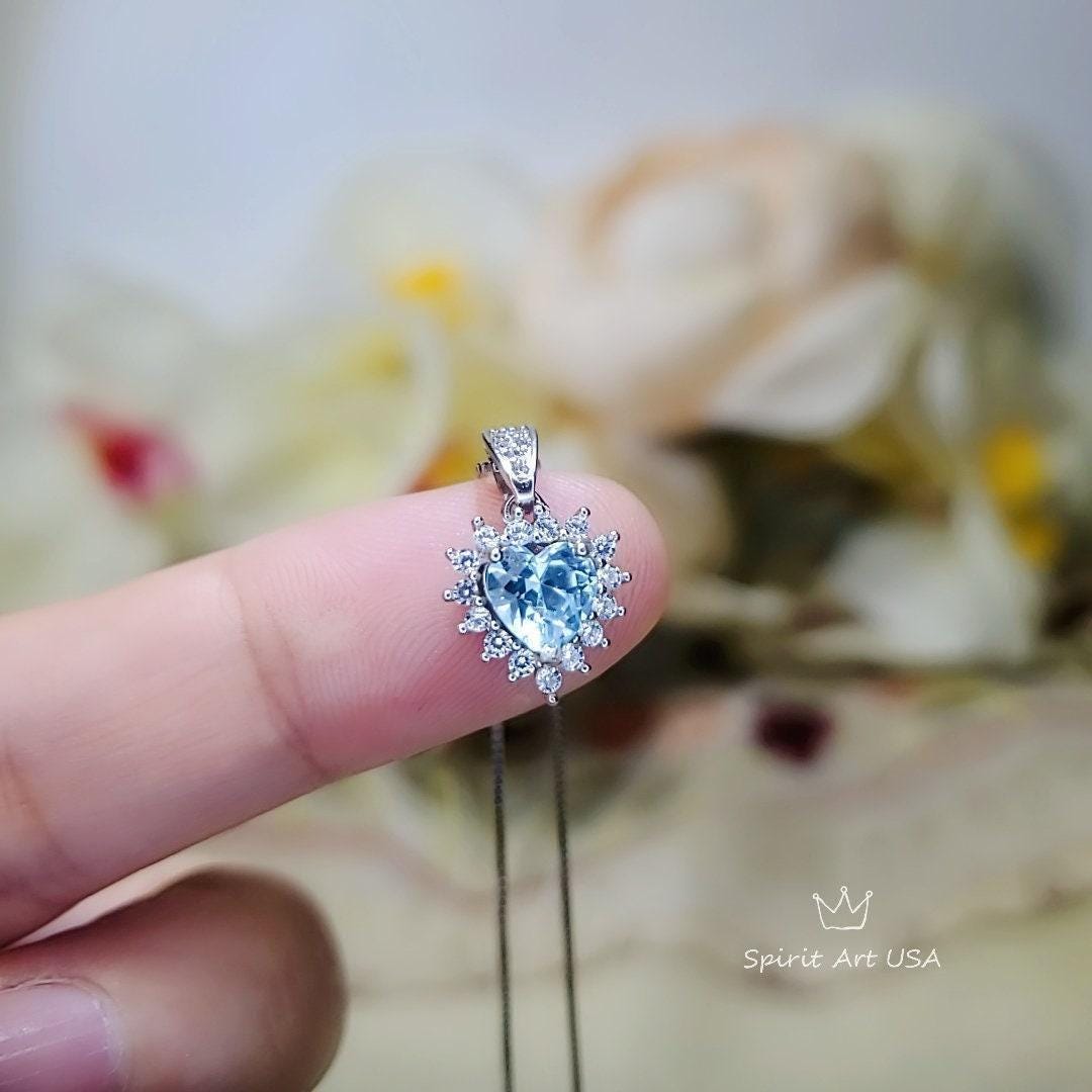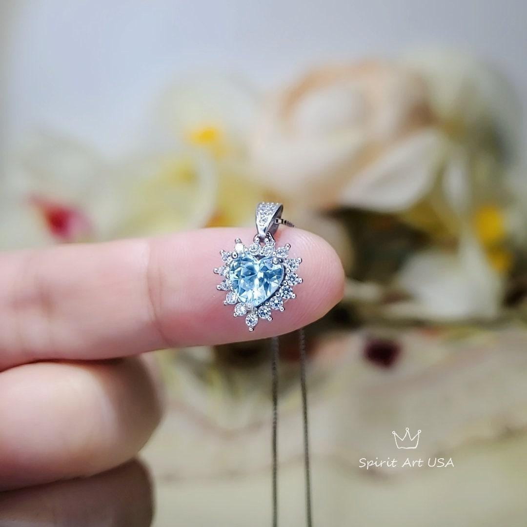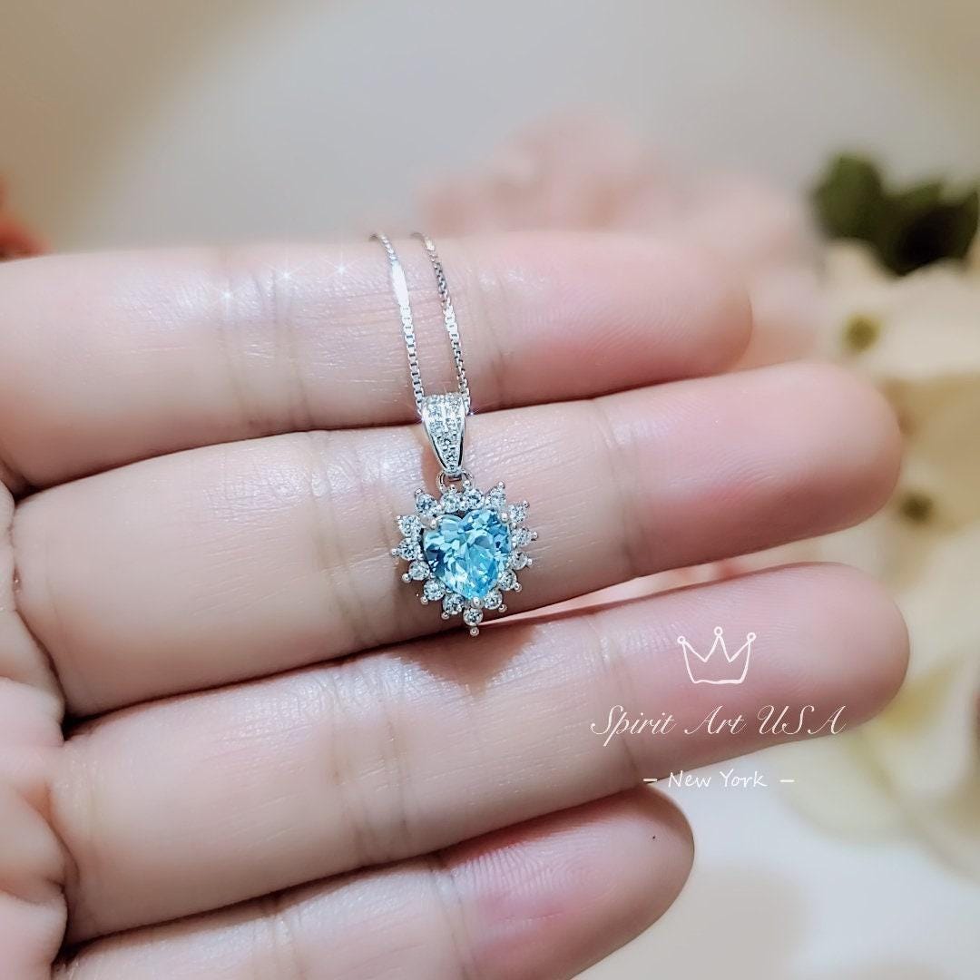 Tiny Aquamarine Jewelry Diamond Heart Style