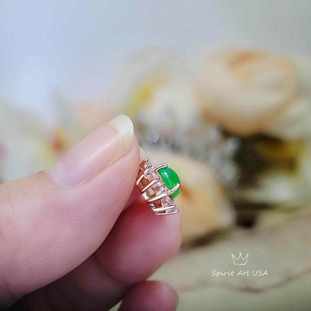 The centerpiece of this necklace is a 6mm natural green jade stone, delicately set in a rose gold-coated 925 sterling silver pendant. The pendant measures 16mm in height, including the bail, showcasing the exquisite craftsmanship. Accented with shimmering simulated diamonds, this necklace captures the eye and adds a touch of sophistication to any outfit.