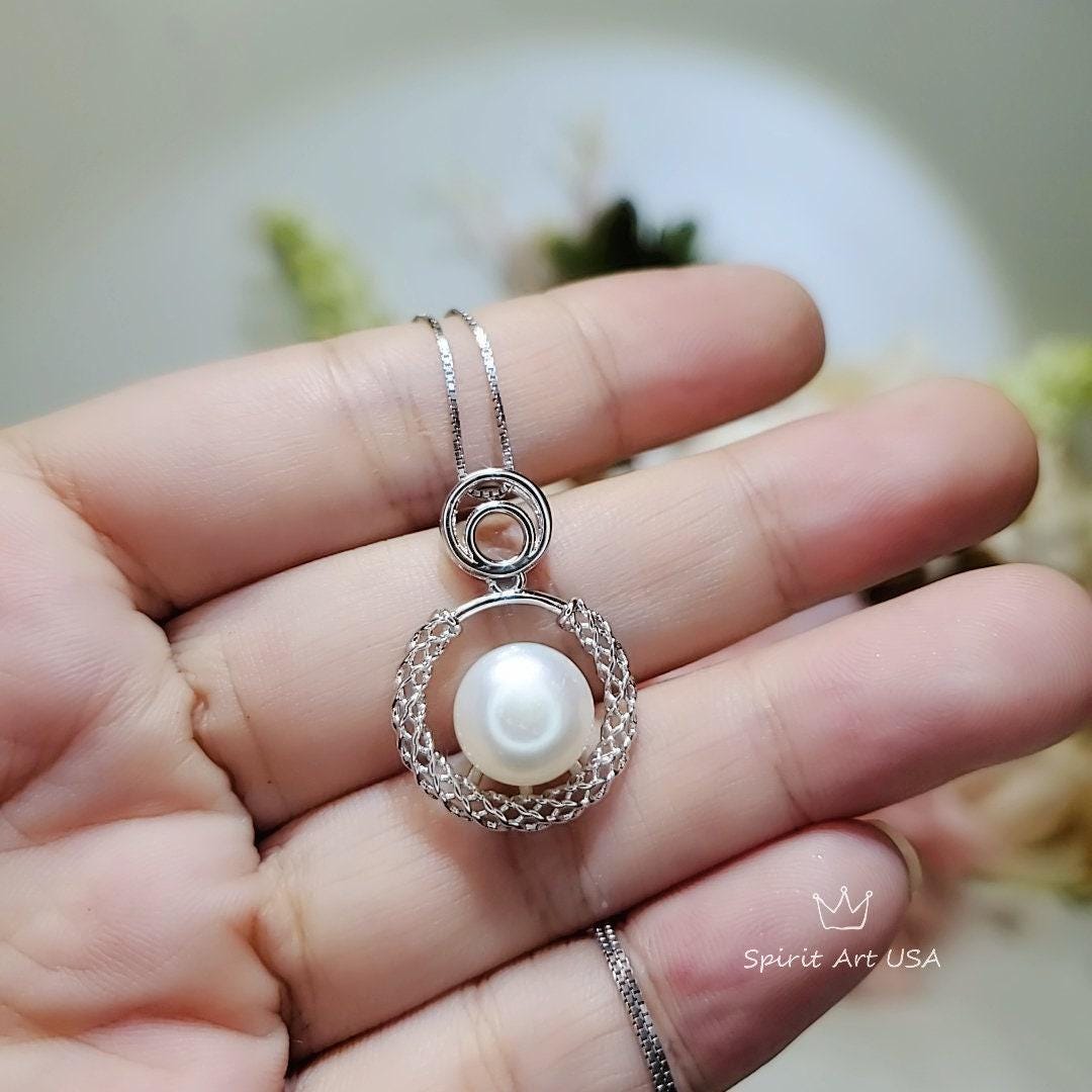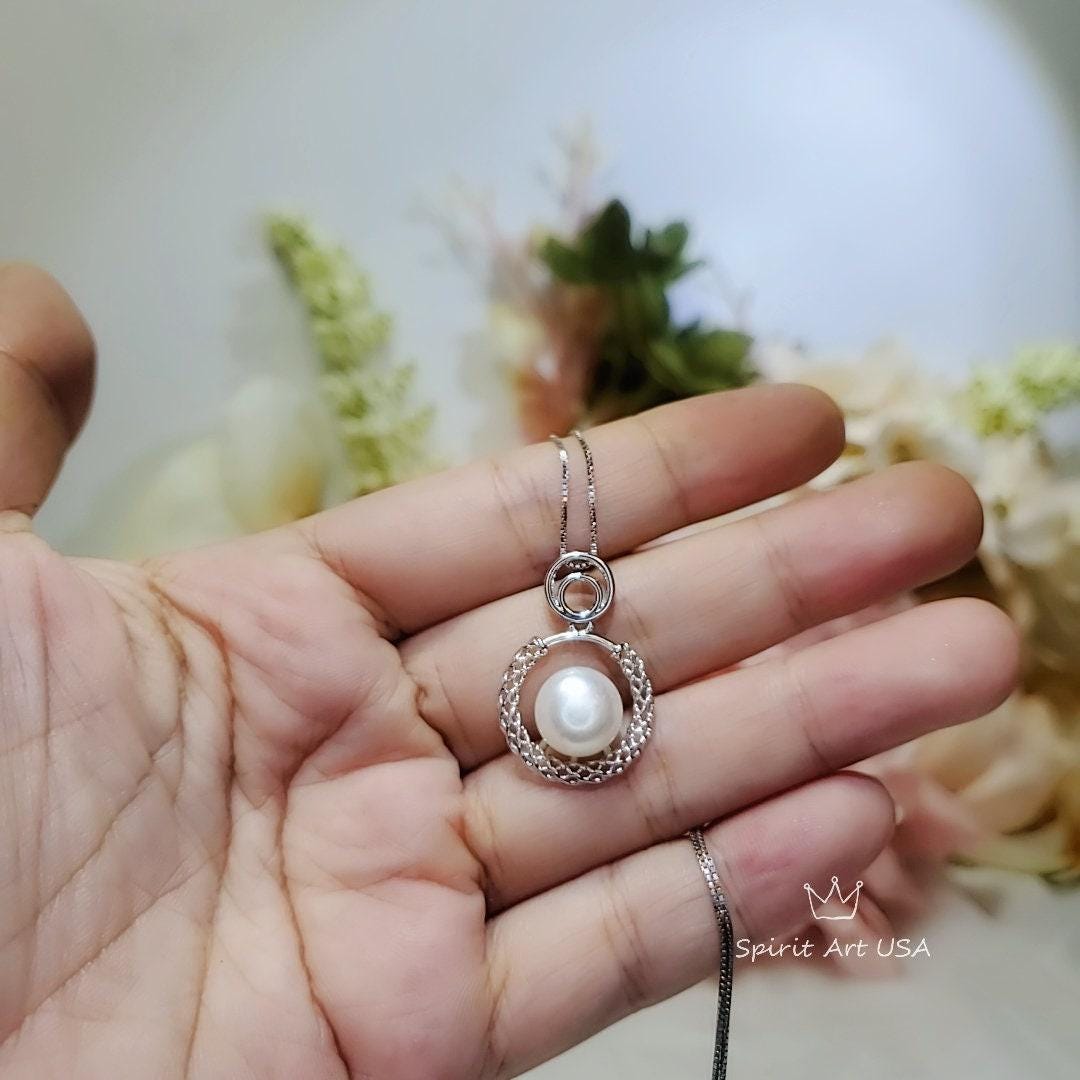 Pendant Holder (bezel & Bail) : White Gold Coated solid 925 Sterling Silver