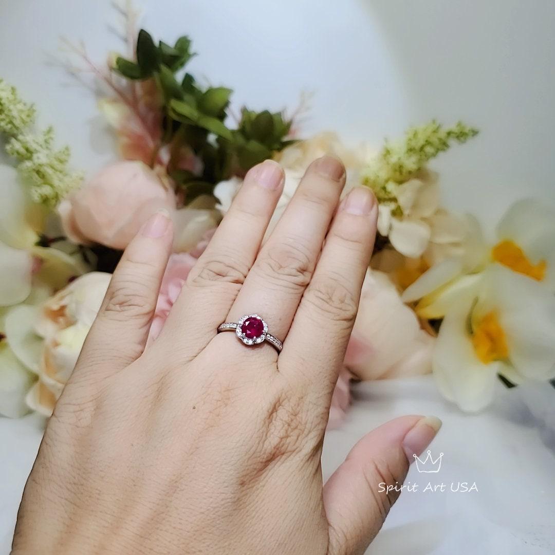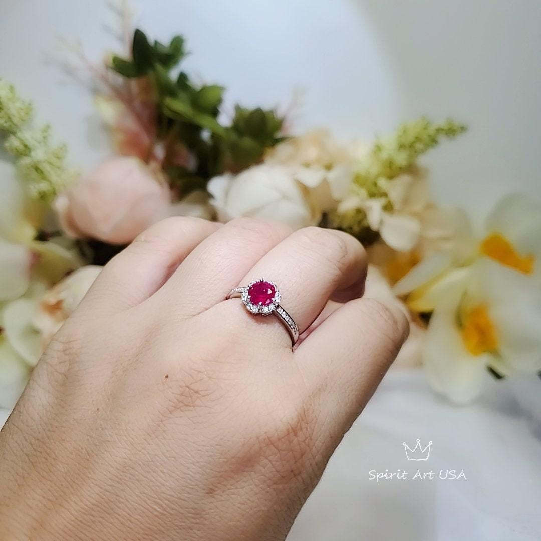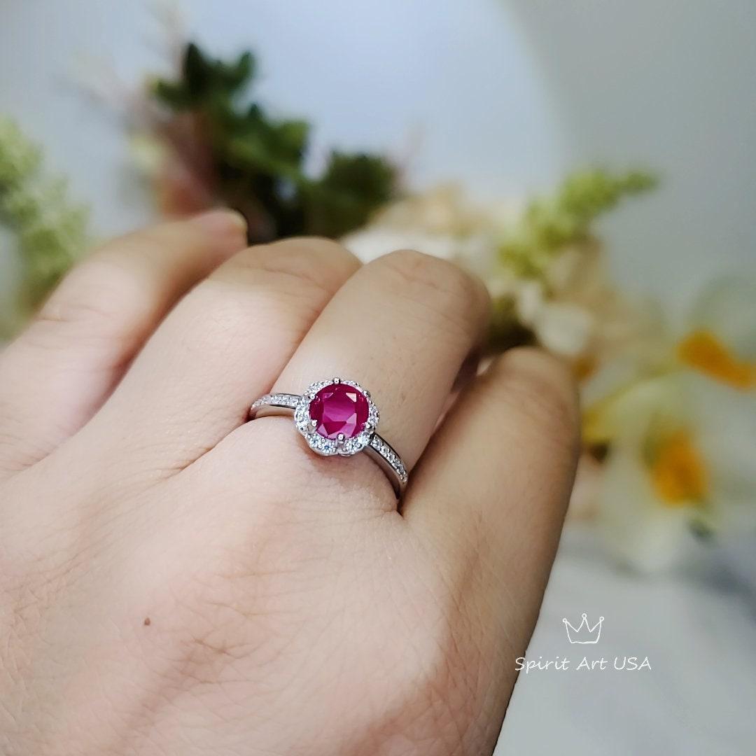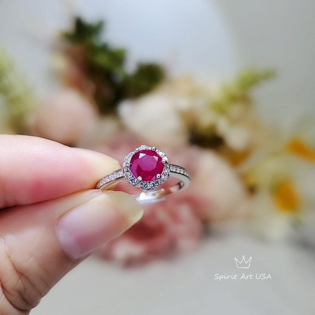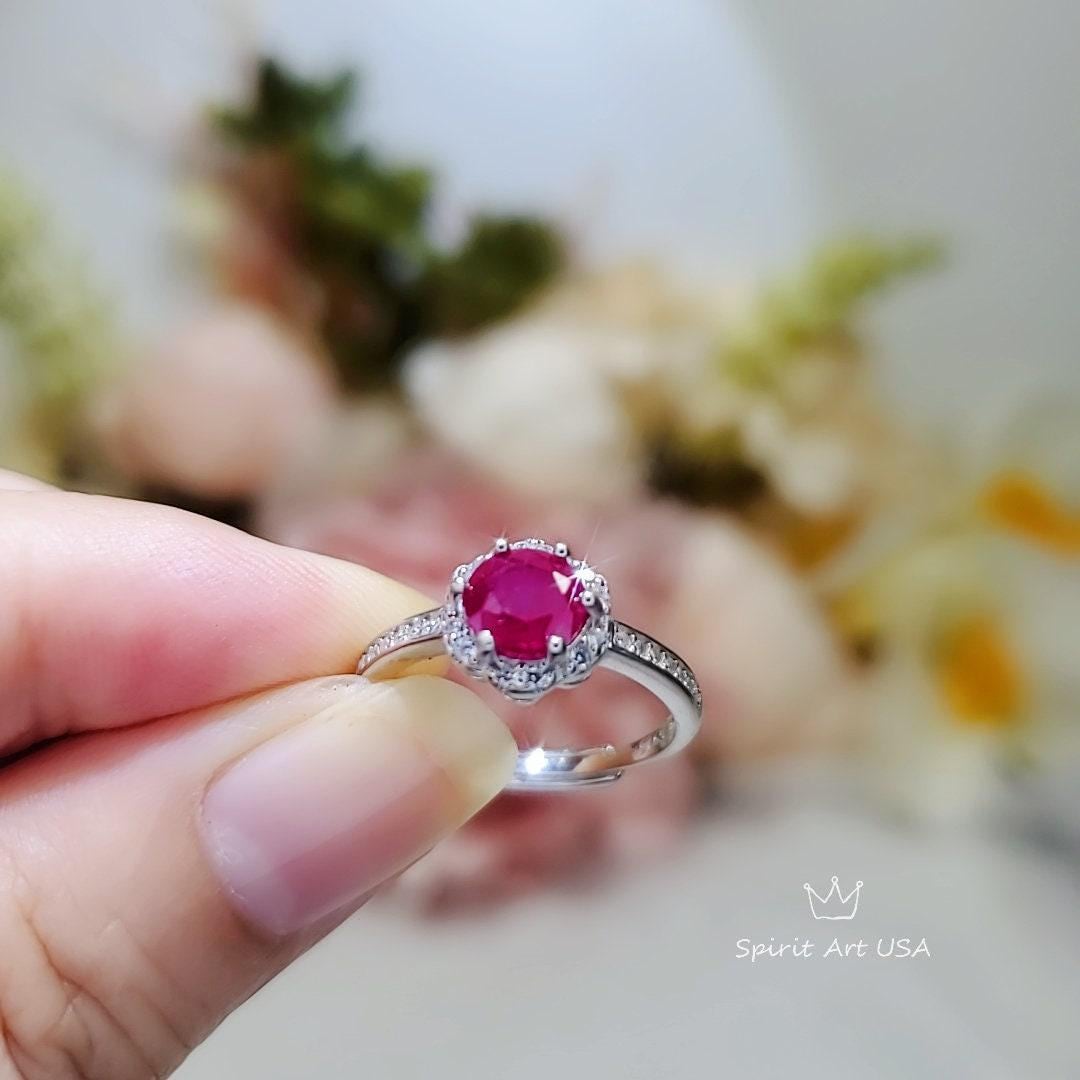 Ruby Ring 6mm Tiny Flower Style