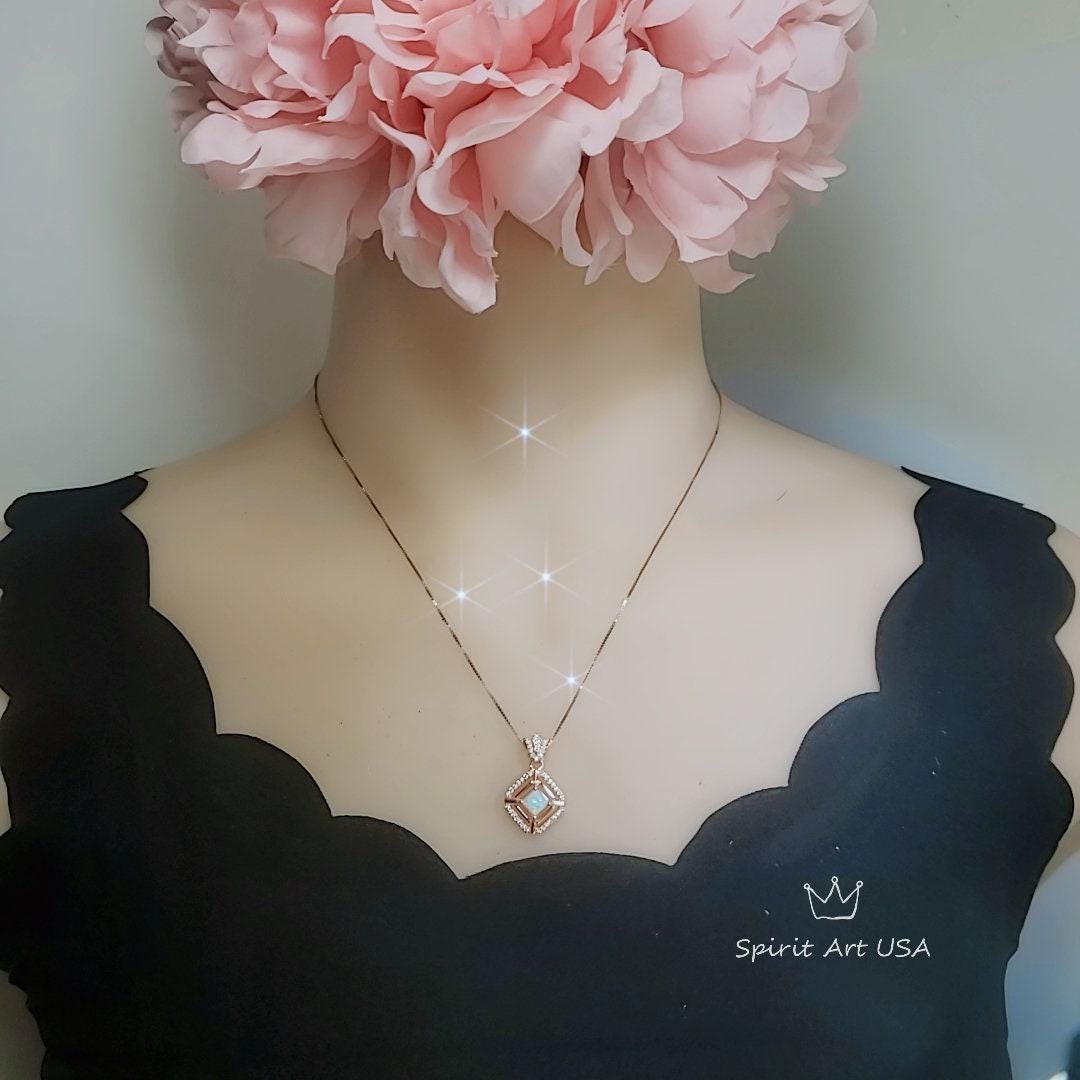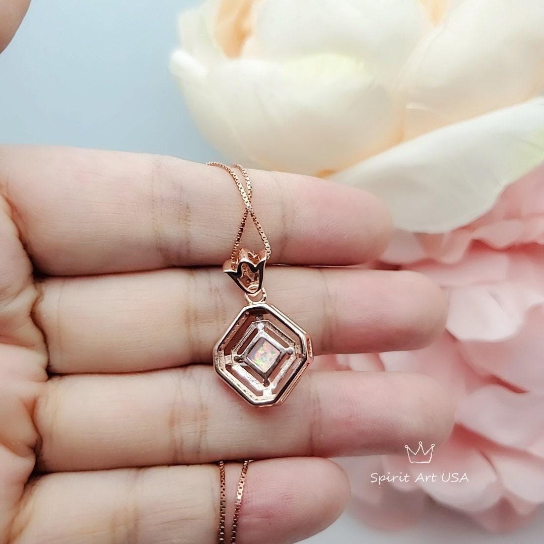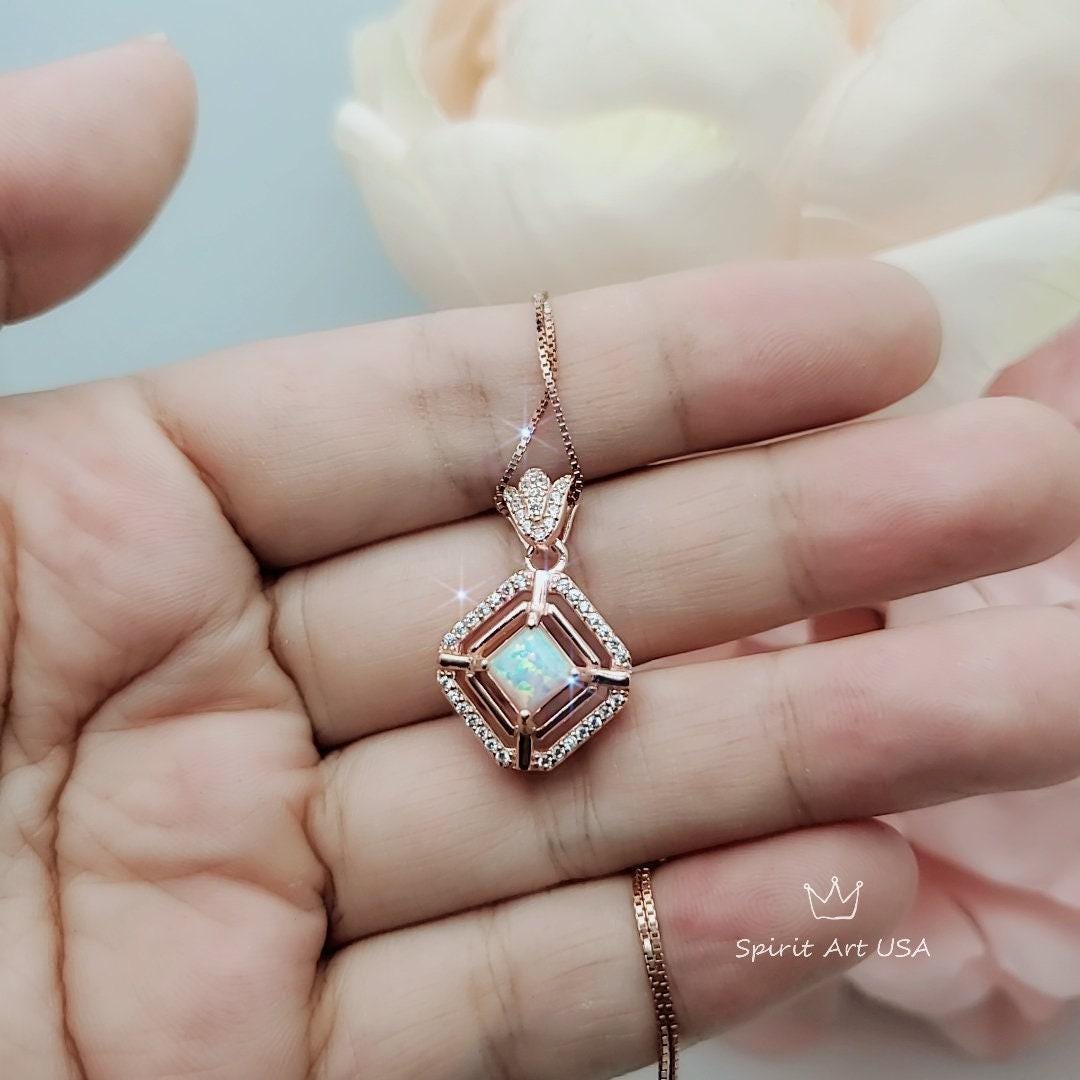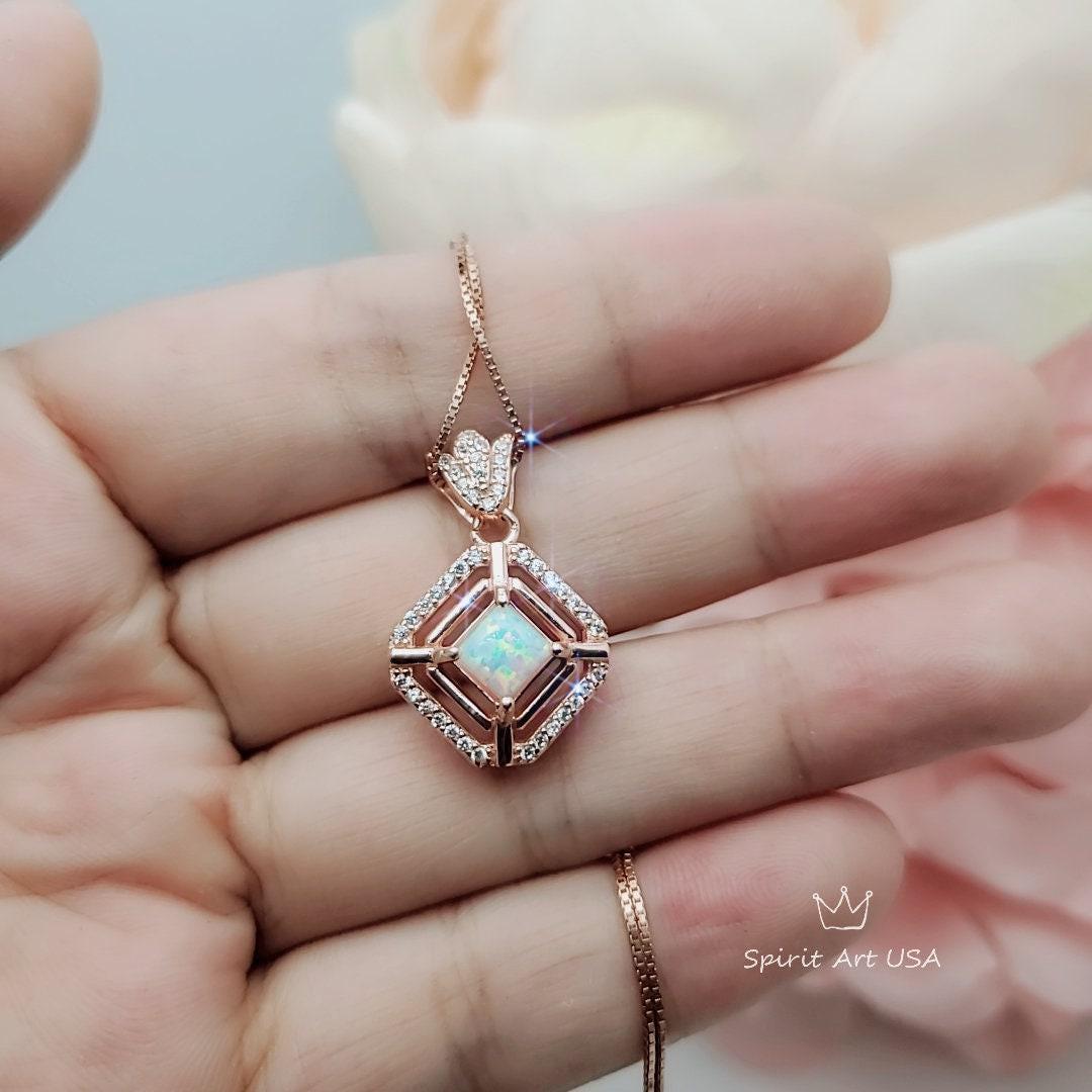 White Opal Jewelry Tiny Square Rose Gold Style