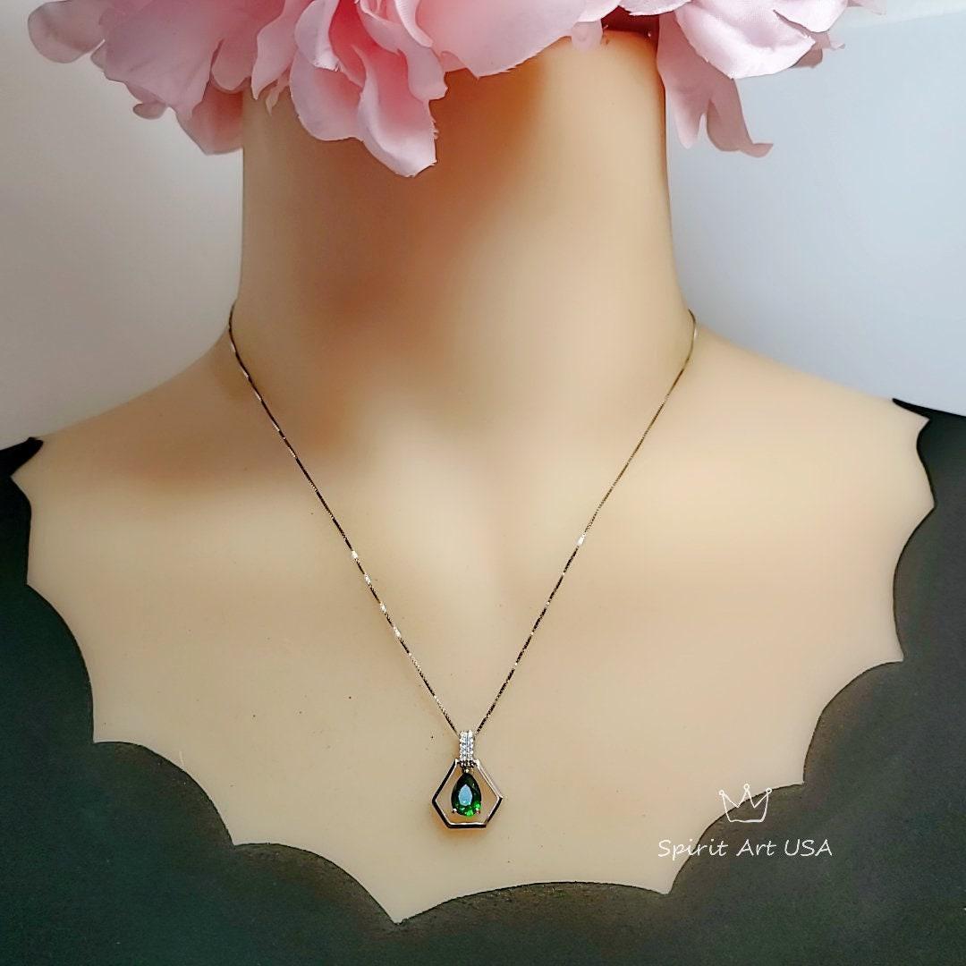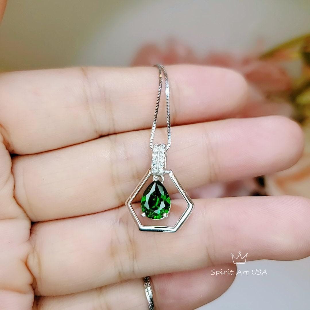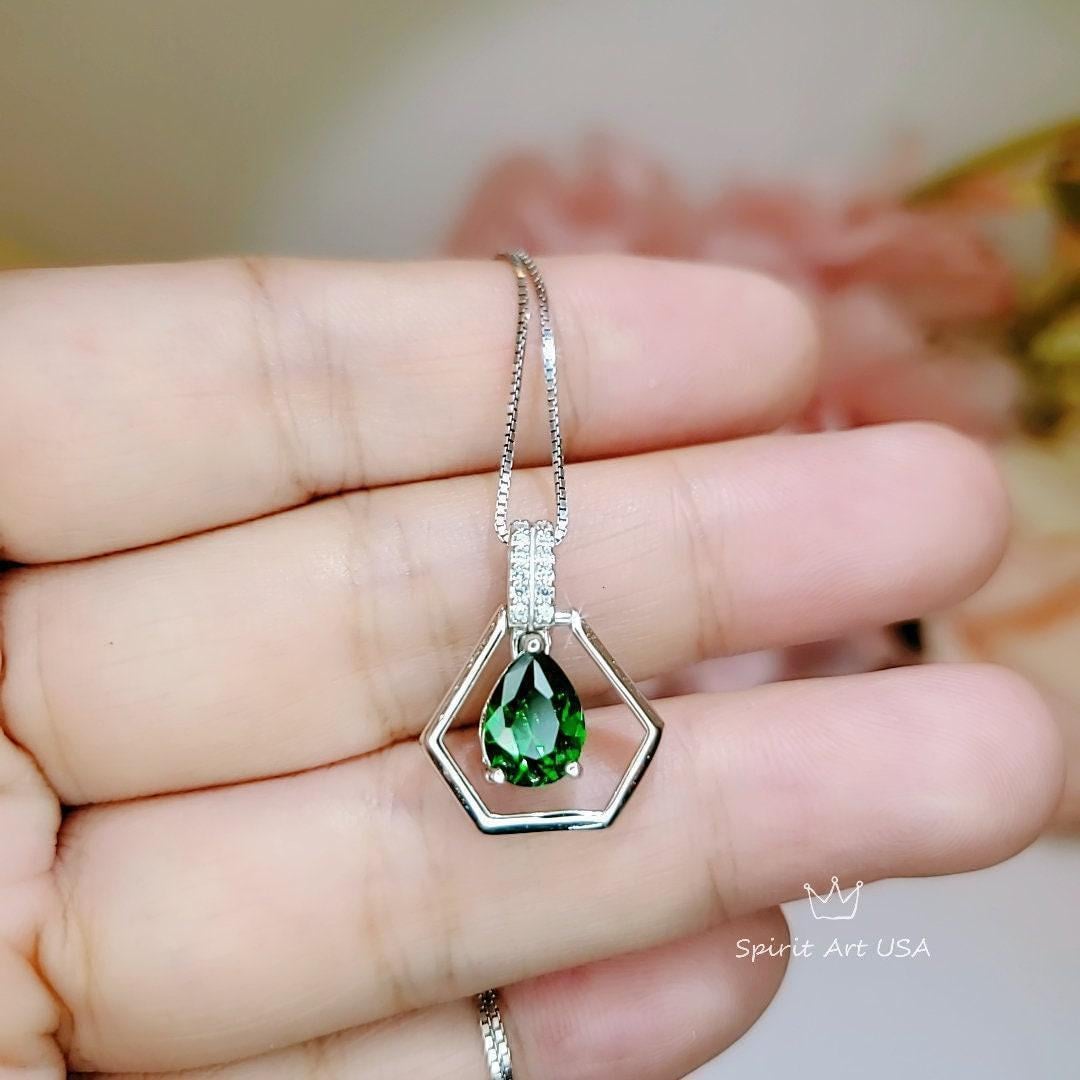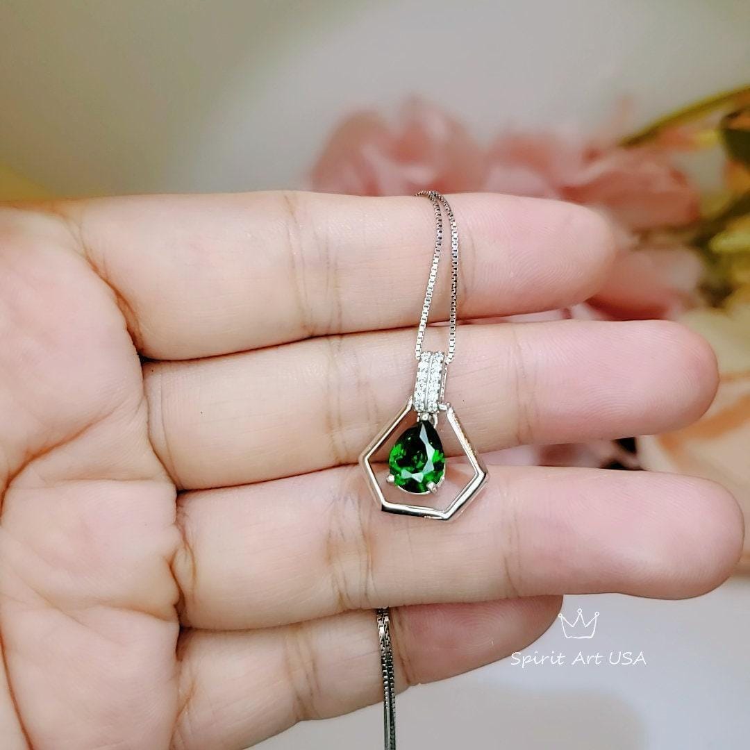 Tiny Green Emerald Jewelry Geometric Trigangle Style