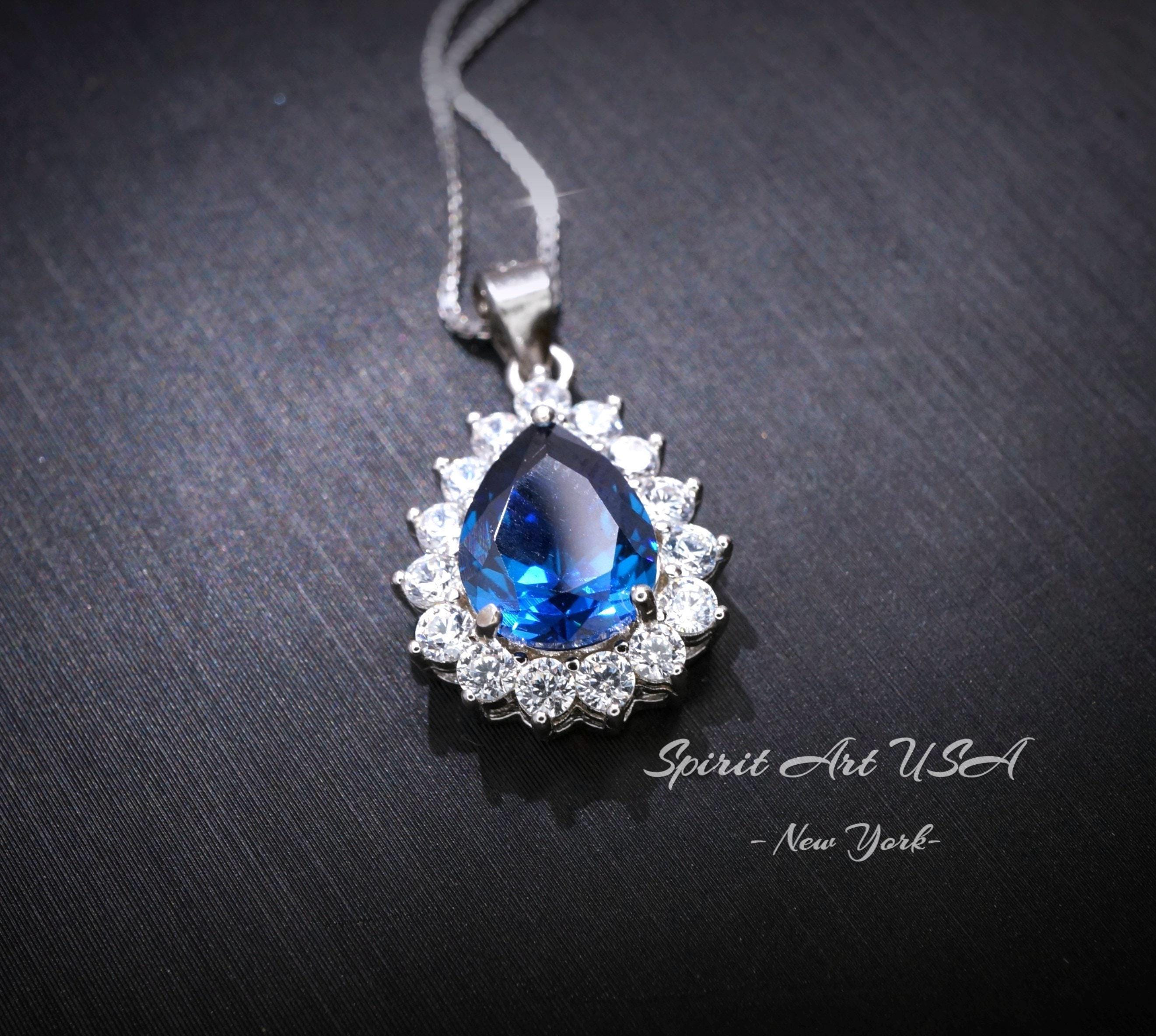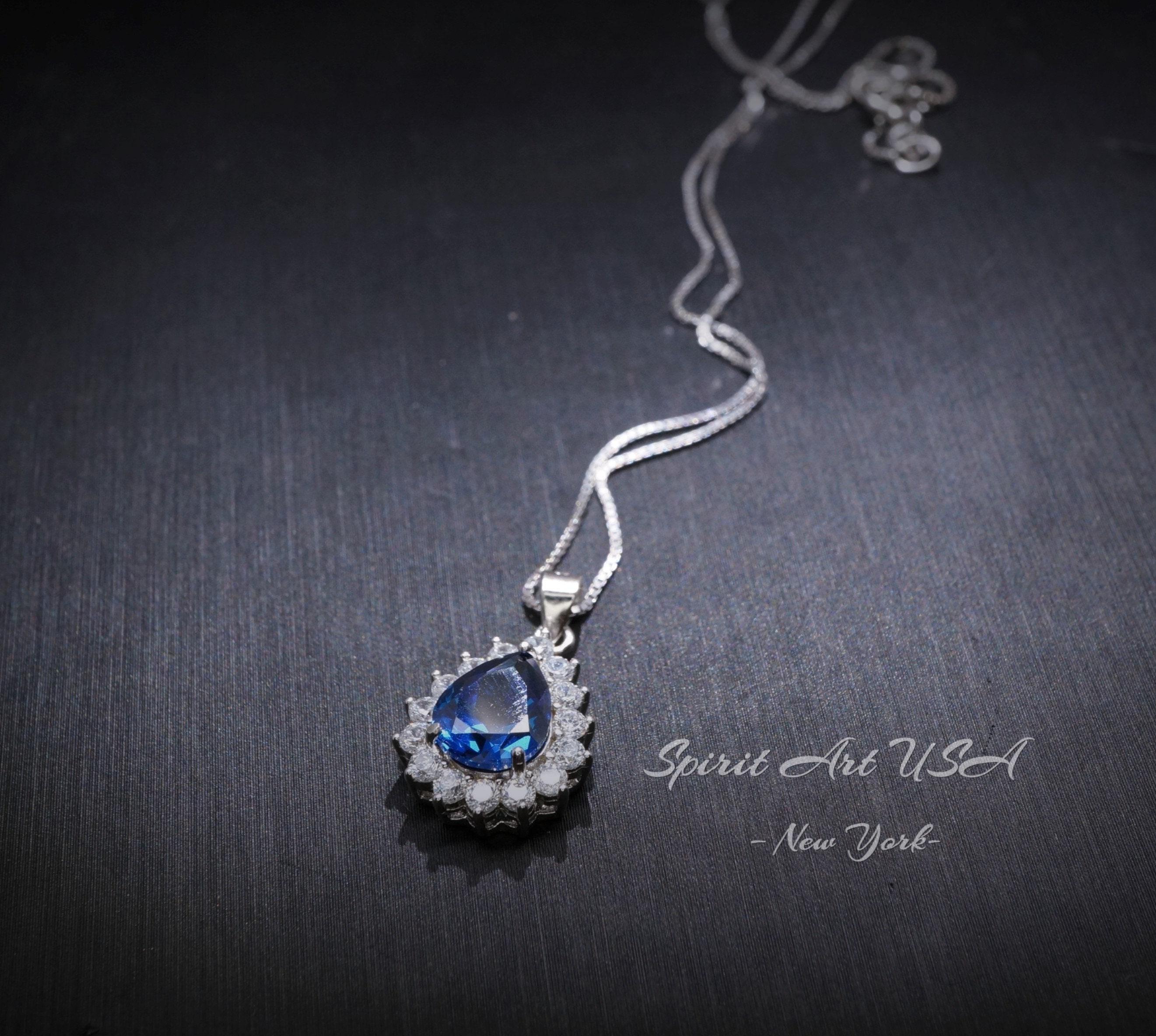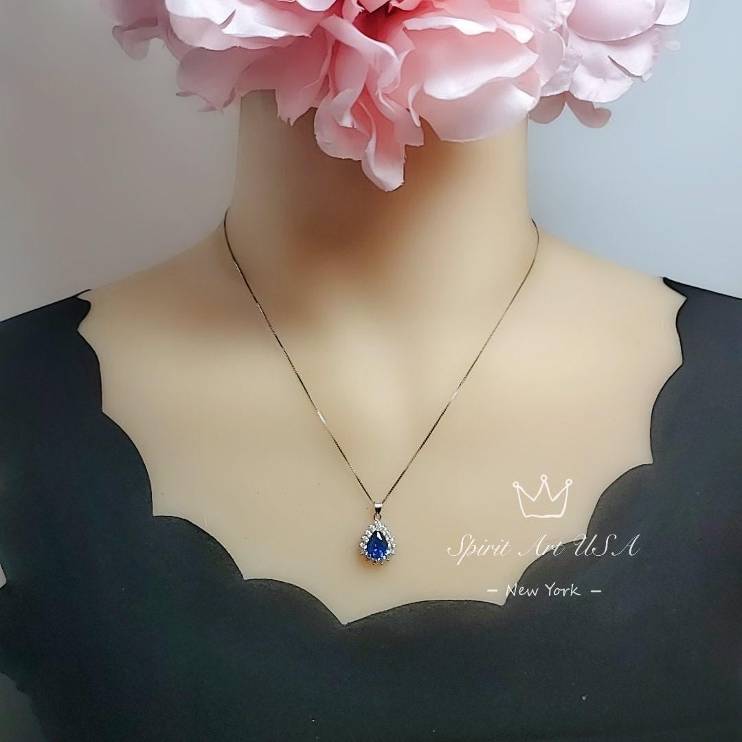 Teardrop Sapphire Tiny Blue Gemstone necklace