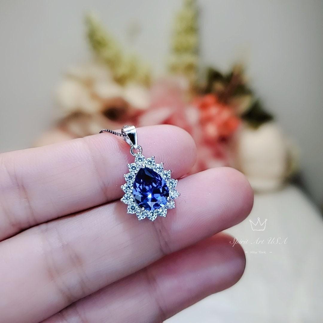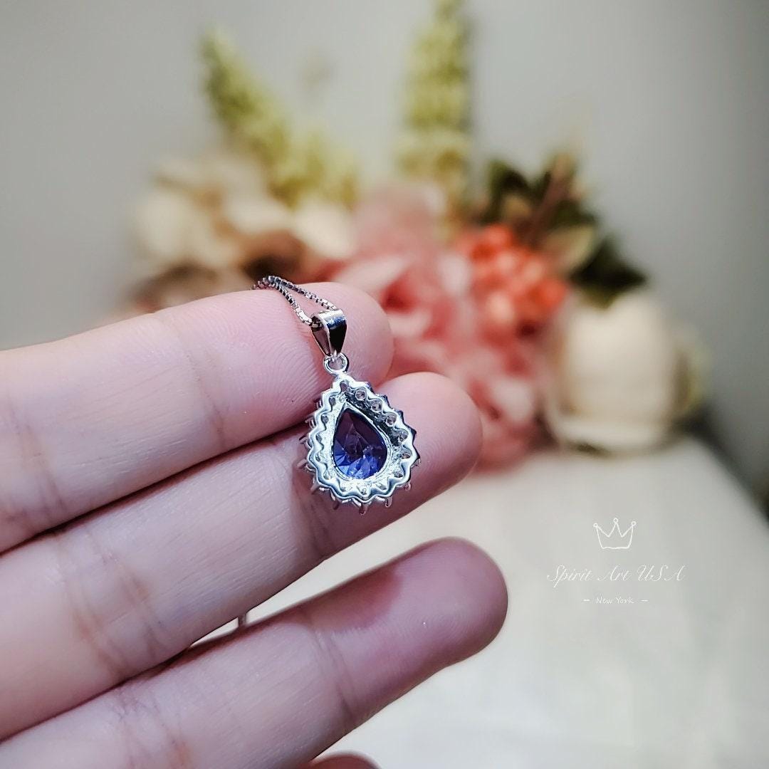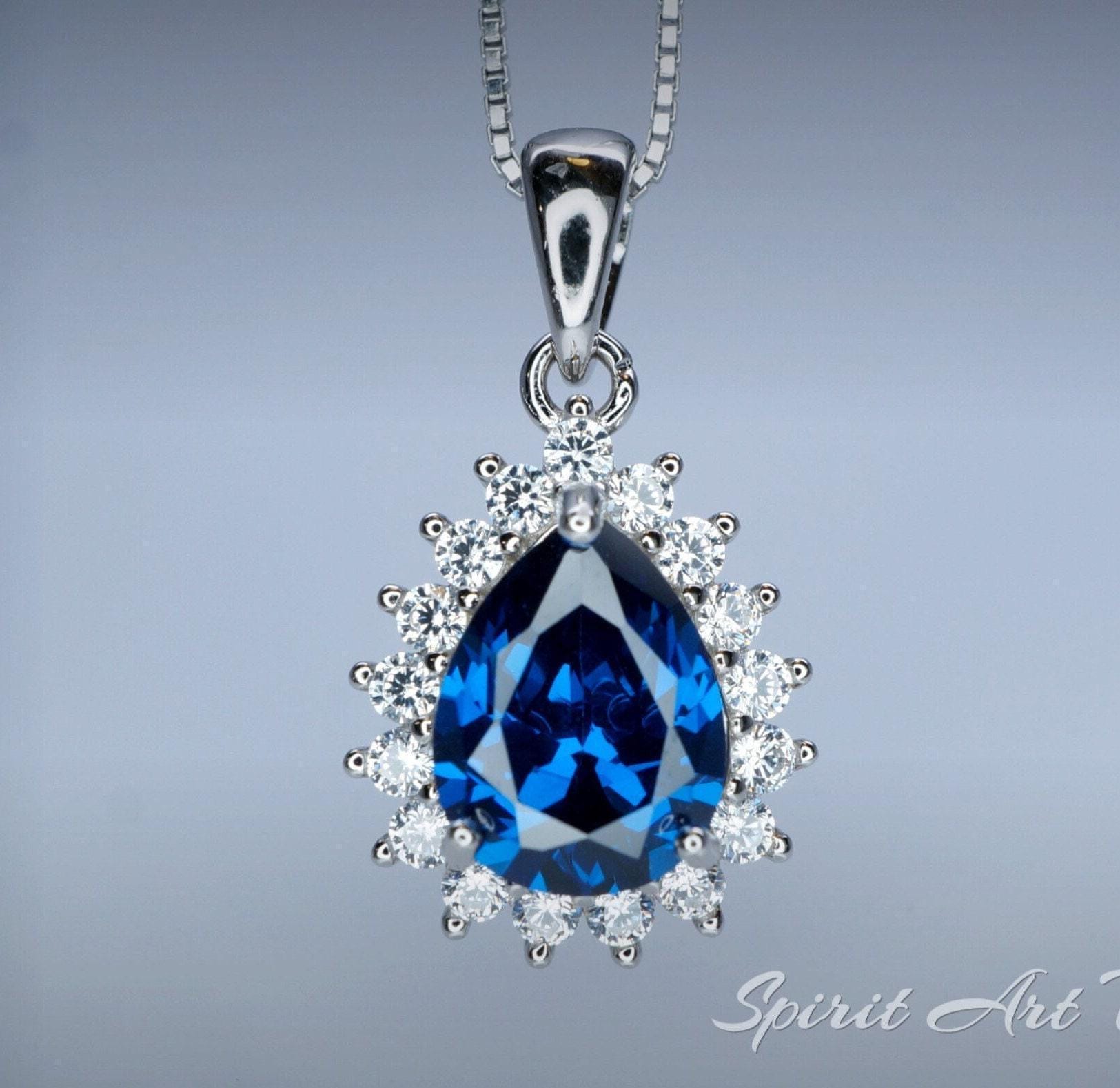 Teardrop Sapphire Tiny Blue Gemstone necklace