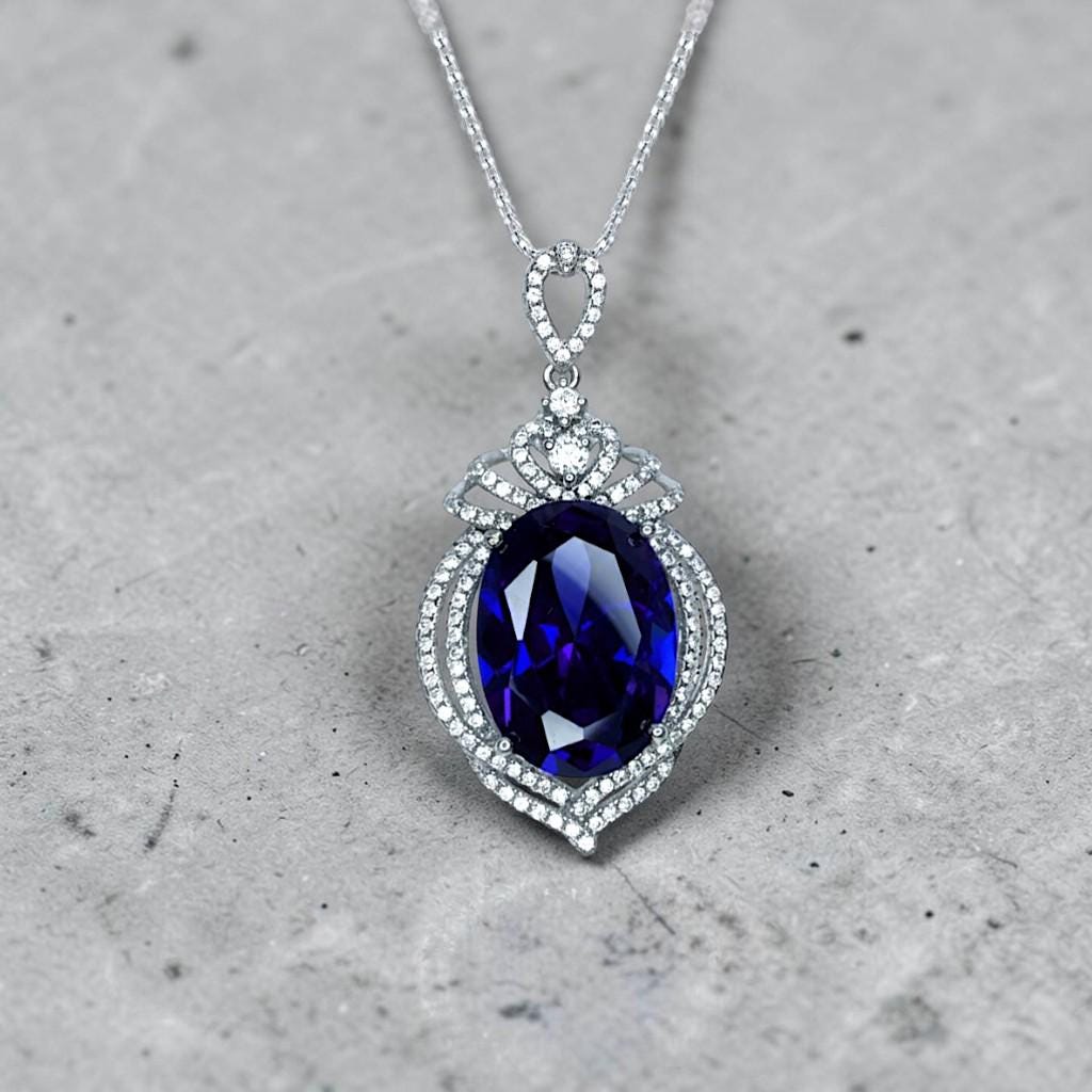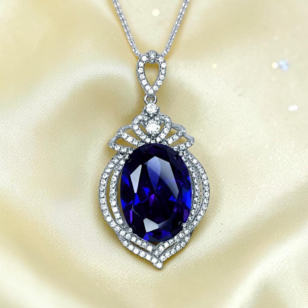 Main Stone: Lab created Energetic Deep Blue Tanzanite Gemstone.