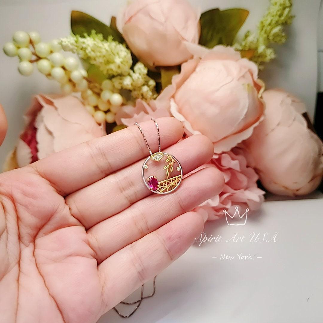 Tiny Red Ruby Jewelry Gold flower artistic Style