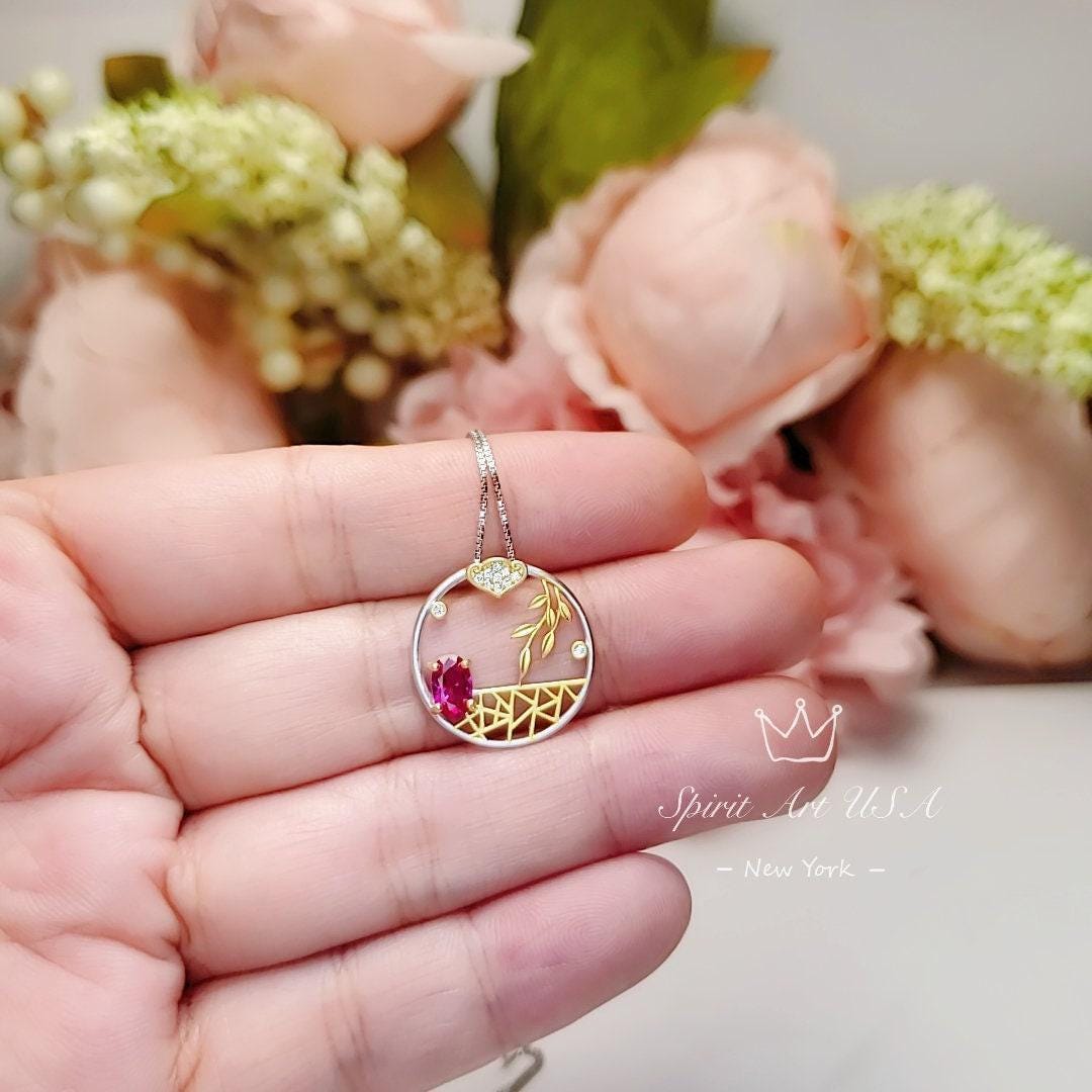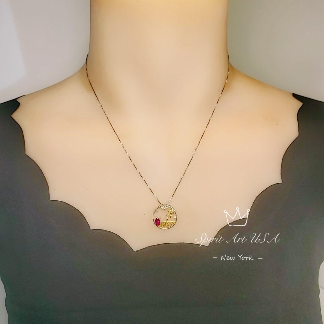 Exactly as described. This is a unique pendent. The only concern I had was the one I received has some splotchy gold coating. I gave it a few rubs with a cloth but i didn’t see any coating come off. It’s not a big deal as the price wasn’t expensive so I wasn’t expecting top quality material as it is both silver and gold coloring. I wasn’t to concerned and decided to keep it without needing to reach out to seller. Still a very nice piece of jewelry. Thankfully the person I gave it to didn’t mind.