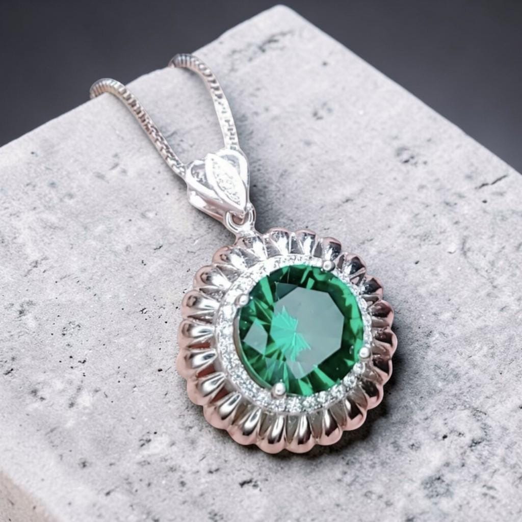 Large Emerald Jewelry Sterling Silver Sunflower Style