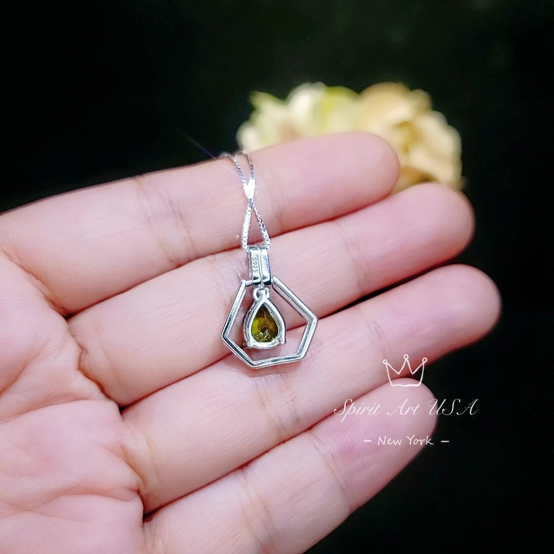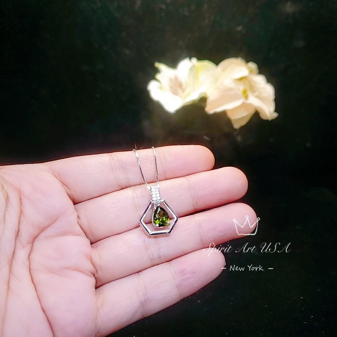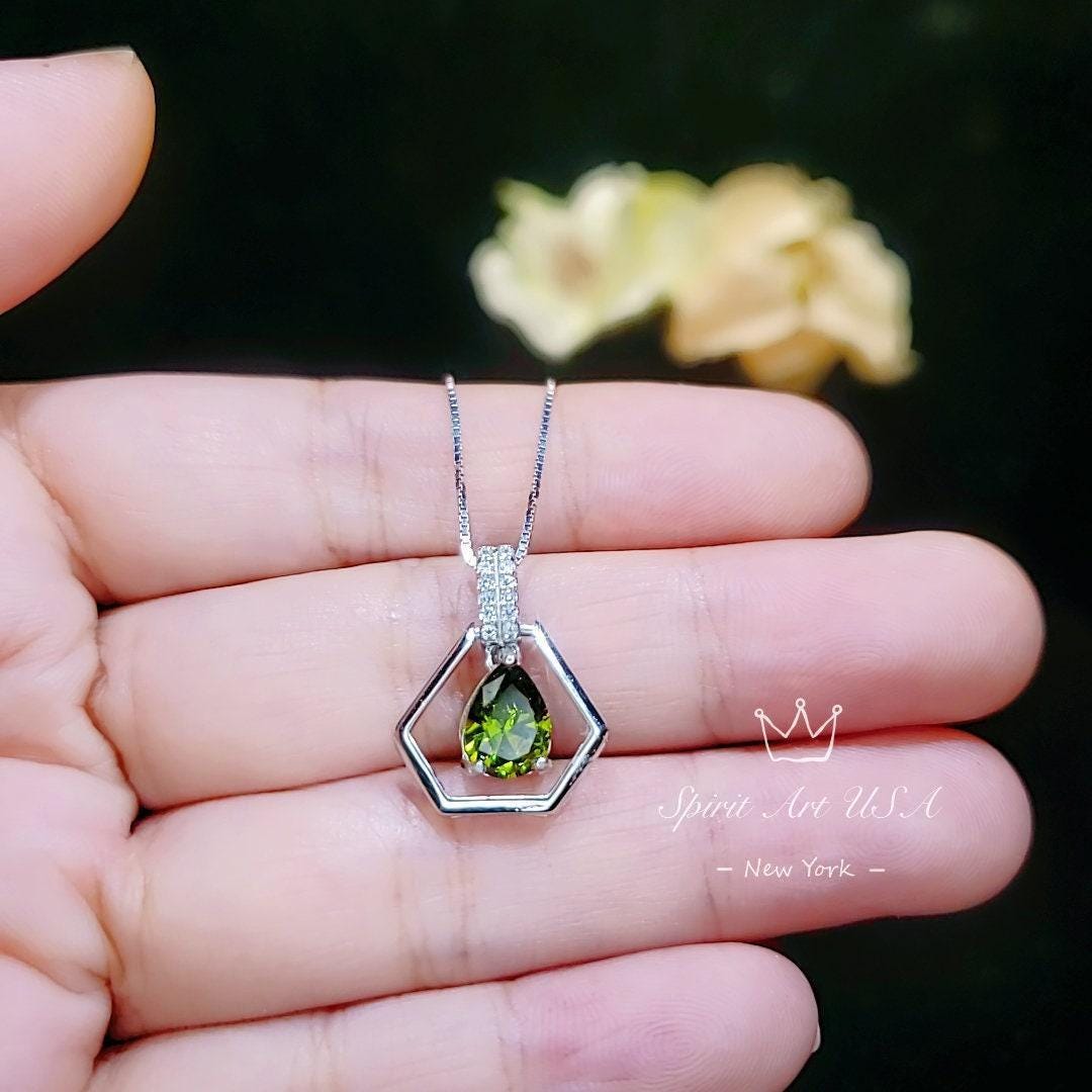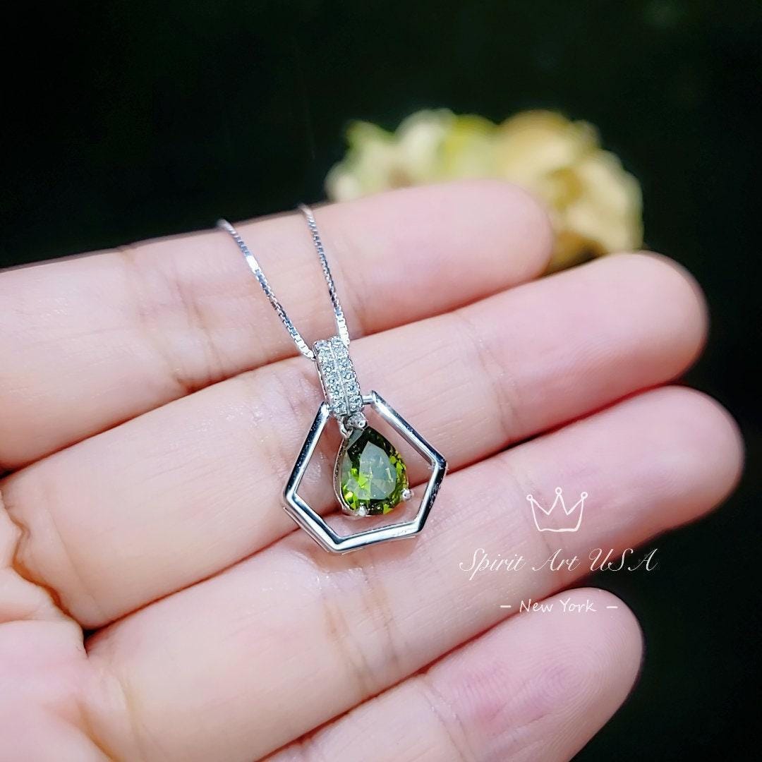Tiny Green Peridot Jewelry Geometric Triangle Style